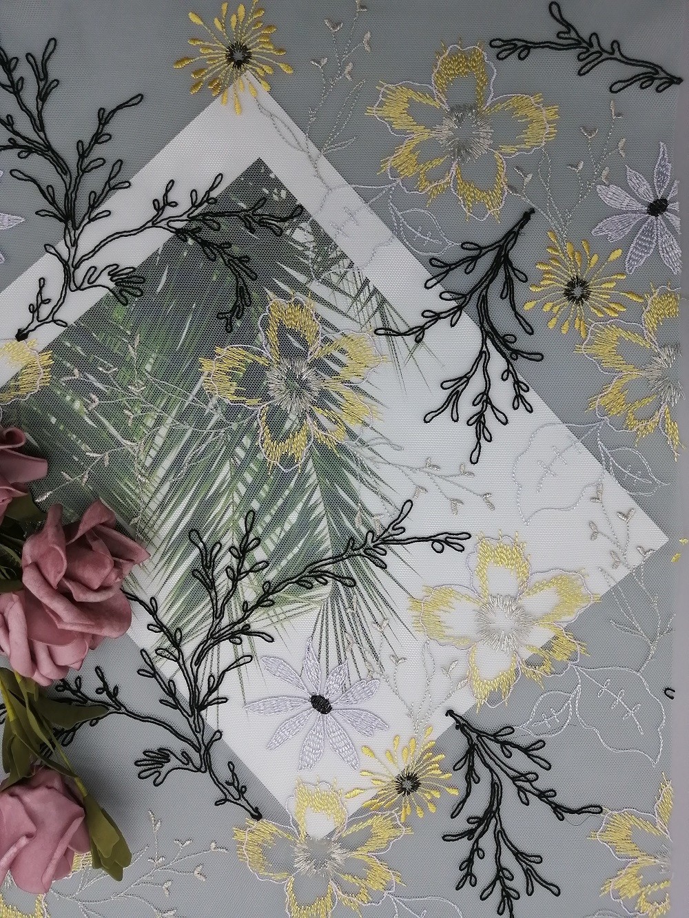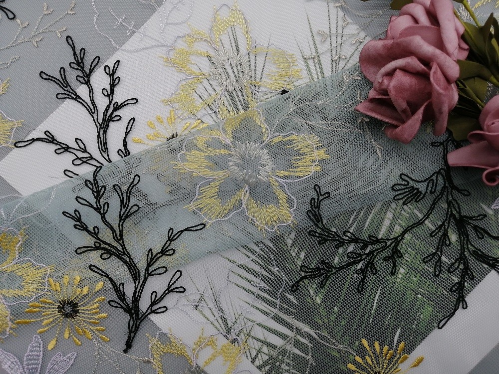 Resaltar: | Tulle Mesh Corded Lace Fabric,el 125cm Mesh Corded Lace Fabric,tela floral del cordón del 125cm Tulle |