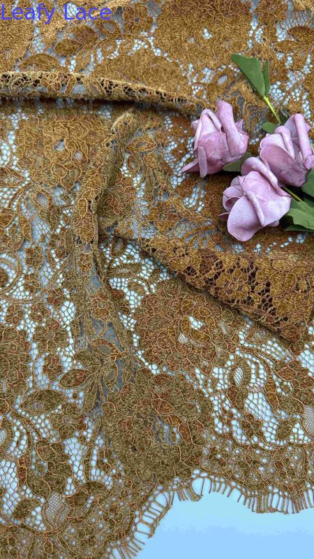 | Resaltar: | Tejido de encaje con bordes de rosas,Tejido de encaje de hilo de chenilla de color marrón,Las mujeres se visten de tela de encaje |
