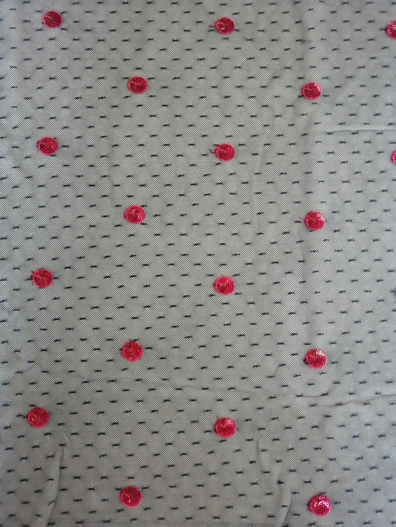 Resaltar: | Polca roja negra Dot Sequin Fabric,Polca Dot Sequin Fabric de la ropa del vestido del día,Tela bordada de la lentejuela amistosa de la piel |
