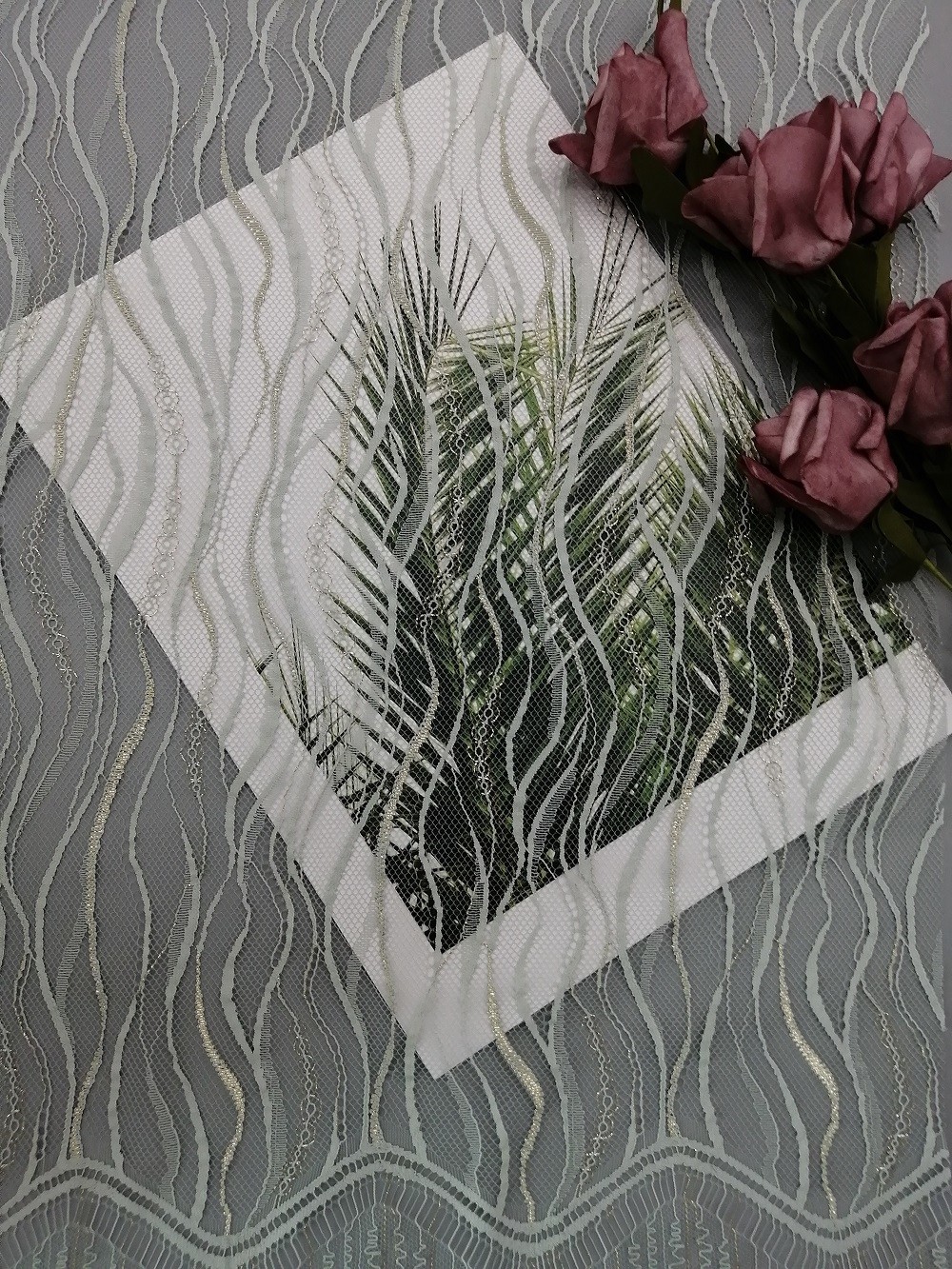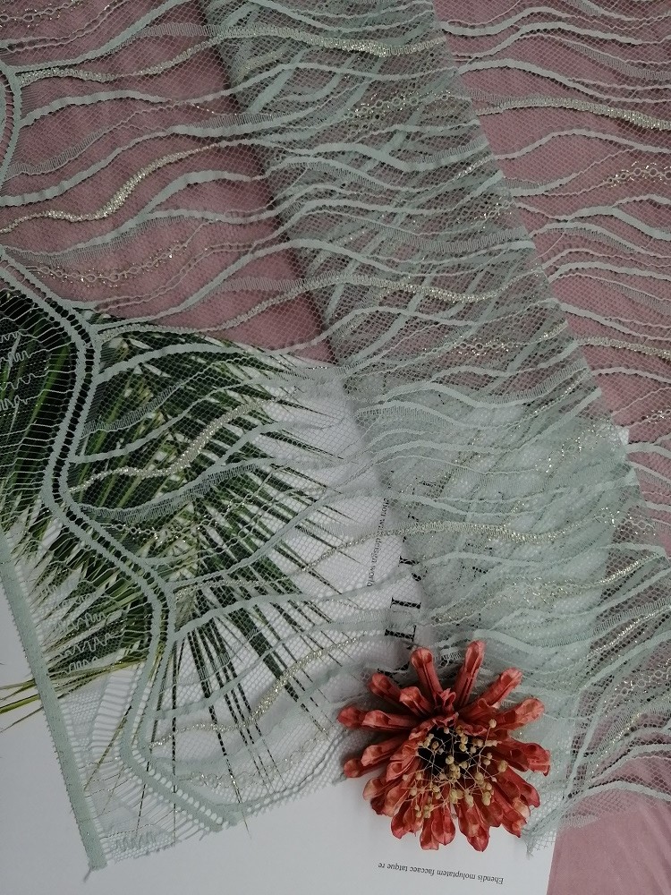 | Resaltar: | Tela metálica francesa del cordón de Chantilly,Tela francesa del cordón de la pestaña de Chantilly,tela metálica del cordón de los 94g/m |