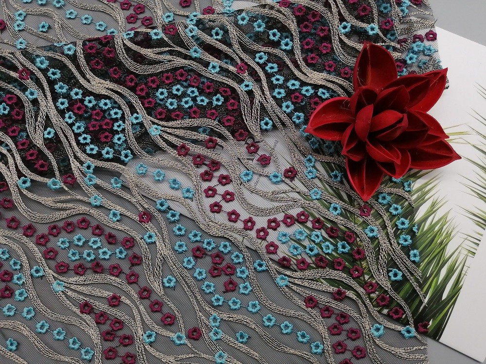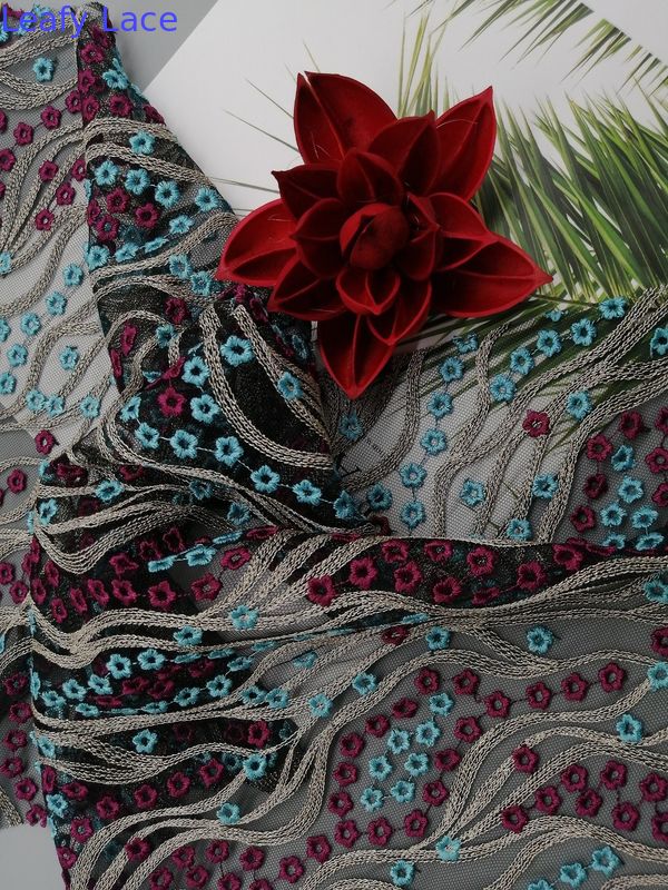 - Tela floral de lujo coloreada material respetuosa del medio ambiente del cordón del bordado 3D para los vestidos Garment Female Dresses de señora, de la falda, de las niñas, materias textiles caseras, cortina, artículos del lecho, ropas, sombreros, vestidos de boda, blusas, etc.