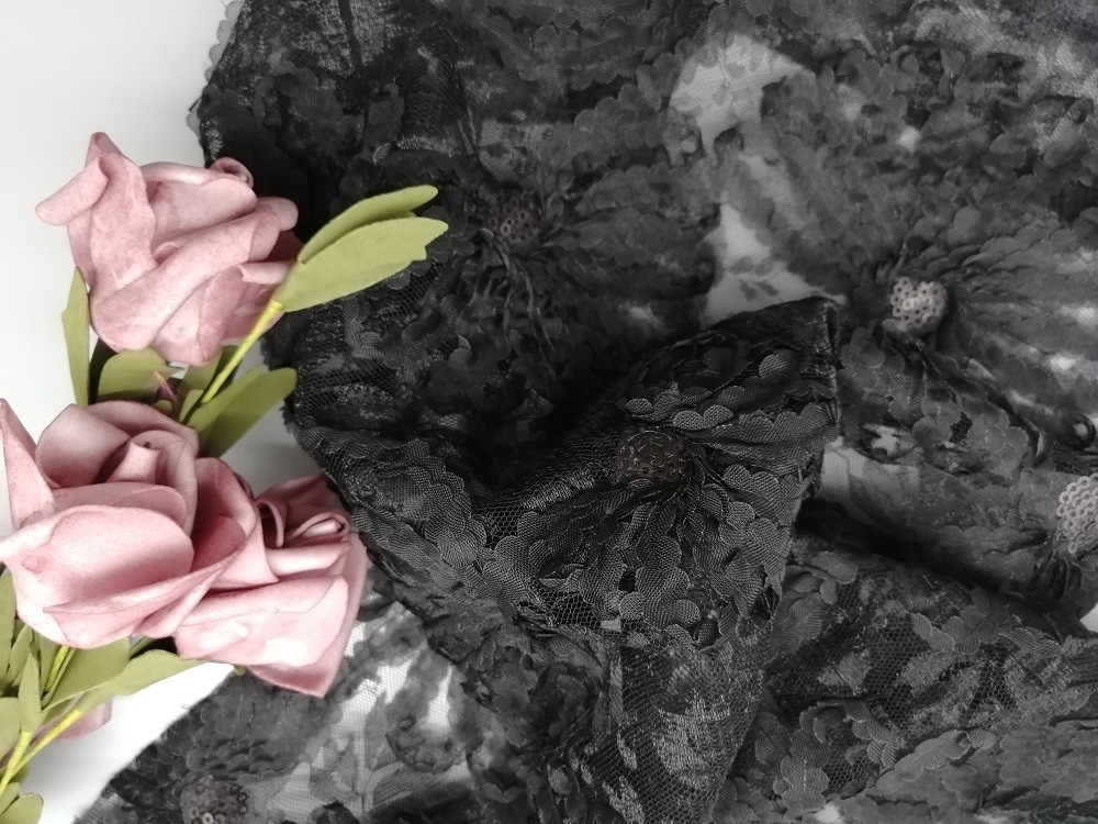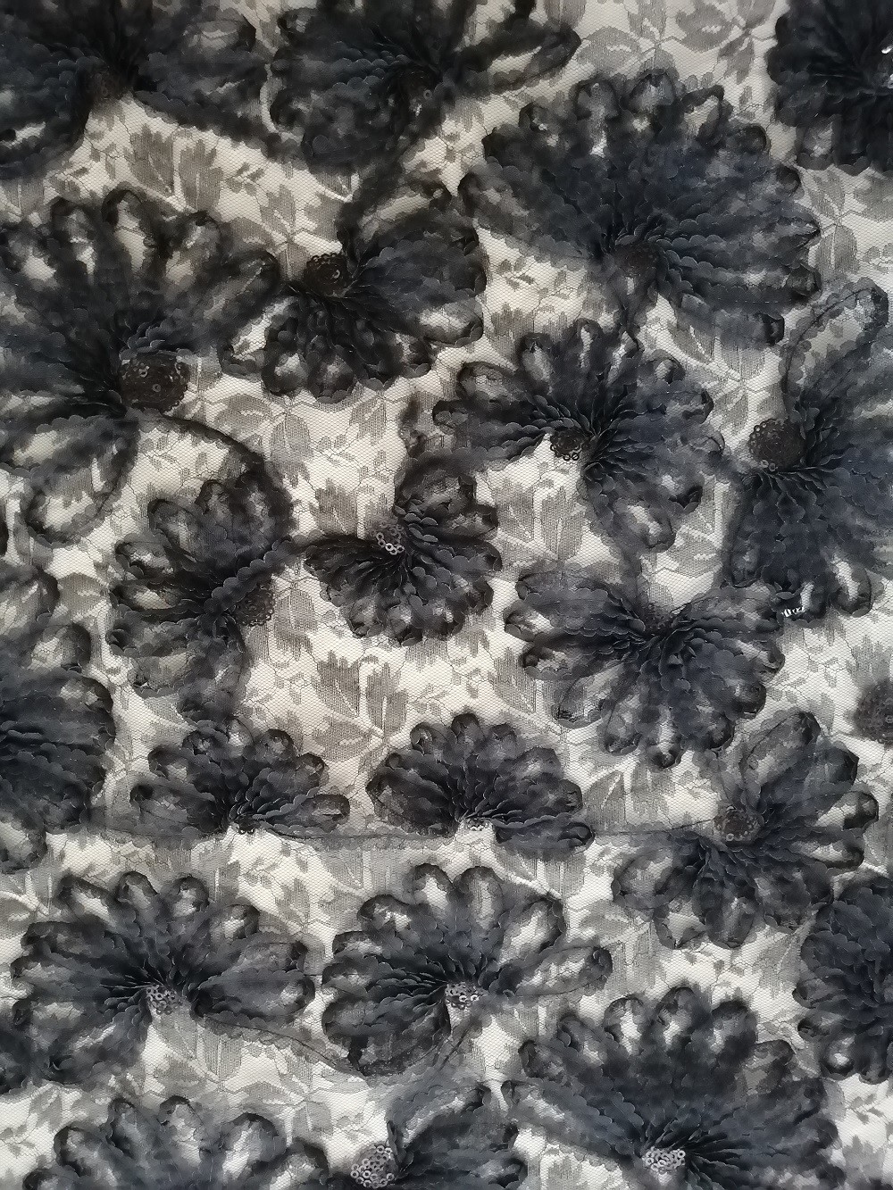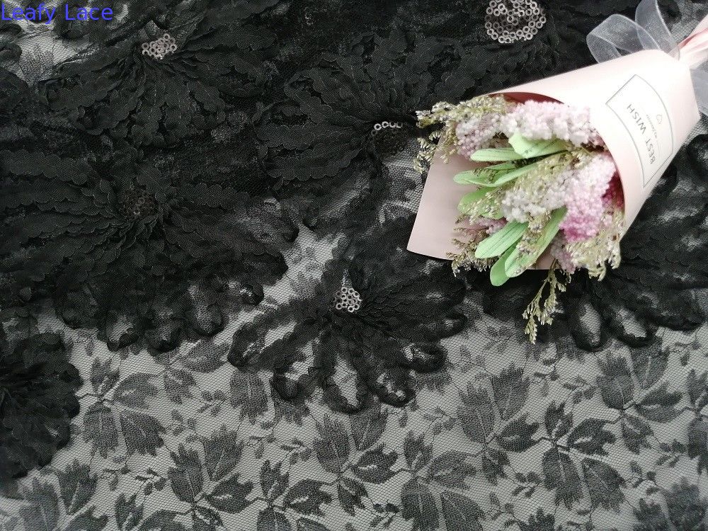 - La lentejuela negra ata el partido base tela del bordado del bordado de Applique 3D que el cordón para las mujeres bordea de largo los vestidos de las niñas de la ropa del vestido, las materias textiles, la cortina, los artículos del lecho, las ropas, los sombreros, los vestidos de boda, las blusas, el etc. caseros.
