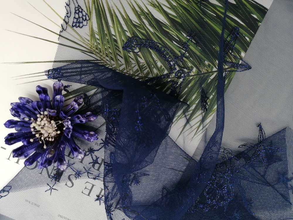 La tela de malla bordada del cordón de los animales de mar del color de la marina de guerra para las mujeres bordea de largo los vestidos de las niñas de la ropa del vestido, las materias textiles caseras, la cortina, los artículos del lecho, las ropas, los sombreros, los vestidos de boda, las blusas, el etc.