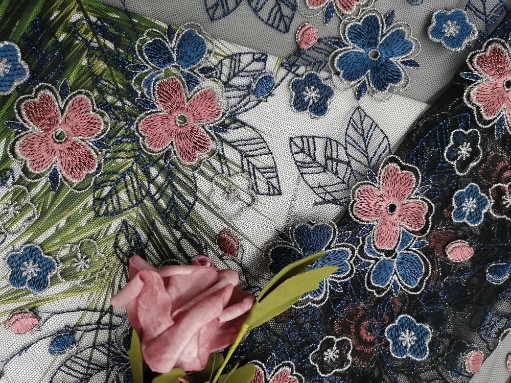El rosa Lurex de la marina de guerra coloreó la tela bordada del cordón para el artículo casero del lecho del mantel de las materias textiles de las marcas de la ropa