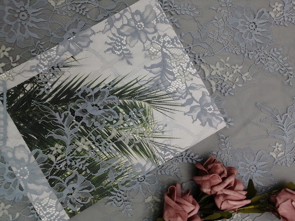 | Resaltar: | El 145CM Grey Eyelash Lace Fabric,Tela del cordón del borde de la concha de peregrino del 145CM,tela del cordón del borde de la concha de peregrino 100yards |