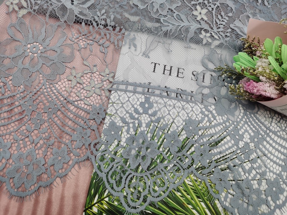 La tela del cordón de Grey Eyelash Scallop Edge Corded para el vestido de la niña de Garment Brands Home Textile del vestido de noche de señora puede cumplir el requisito del estándar 100 de OEKO-Tex.
