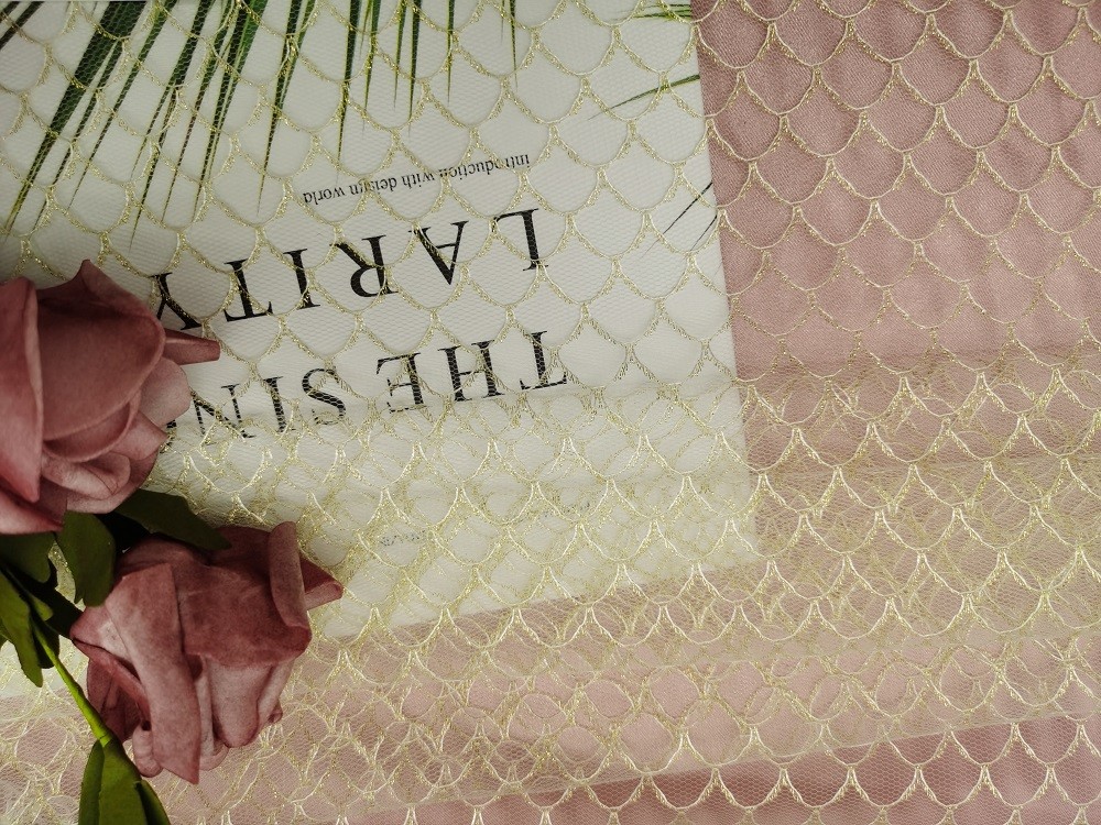 La tela metálica de Lurex Mesh Ivory Soft Tulle Mesh del oro para el vestido de la niña de Dress Garment Brands del vestido de noche de señora puede cumplir el requisito del estándar 100 de OEKO-Tex.
