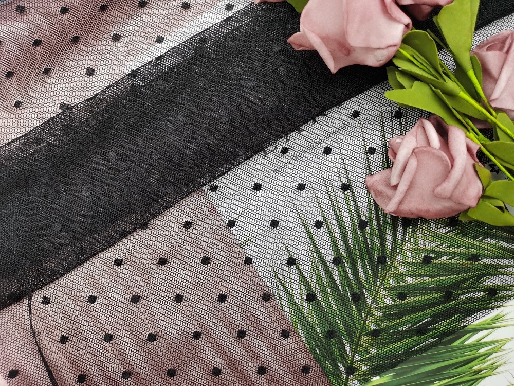 La polca negra Dot Elastic Mesh Soft Stretch ata la tela para la niña que el vestido está para las materias textiles caseras, cortina, artículos del lecho, ropas, sombreros, vestidos de boda, blusas, Garments de señora, mantel, vestidos de Dress Garment Brands del vestido de noche de señora de las niñas, forma los zapatos, los pantalones, los pantalones, los pantalones cortos, las chaquetas, el etc. femeninos.