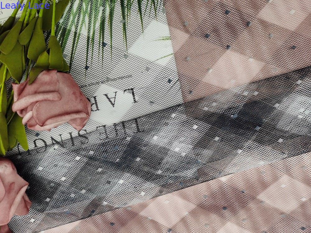 - La tela del cordón de Dot Flocked Printing Mesh Printed del poliéster para el vestido de la niña de Dress Garment Brands del vestido de noche de señora puede cumplir el requisito del estándar 100 de OEKO-Tex.