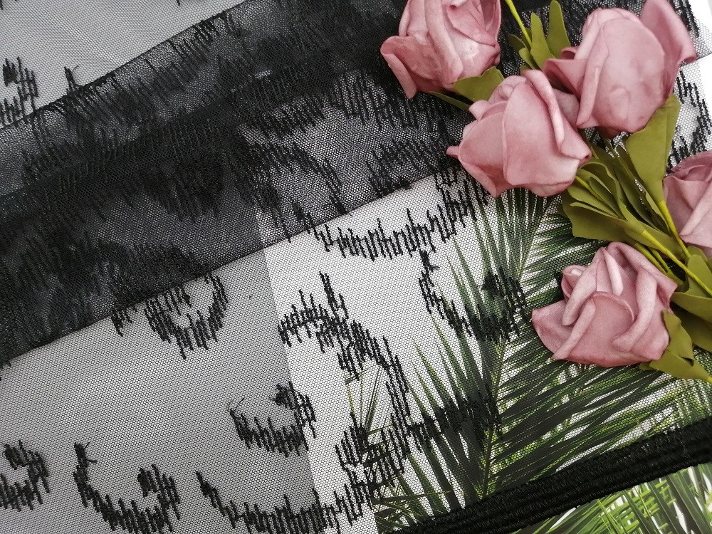 La tela de Tulle Mesh Crochet Black Embroidered Lace para el vestido de la niña de Dress Garment Brands del vestido de noche de señora puede cumplir el requisito del estándar 100 de OEKO-Tex.