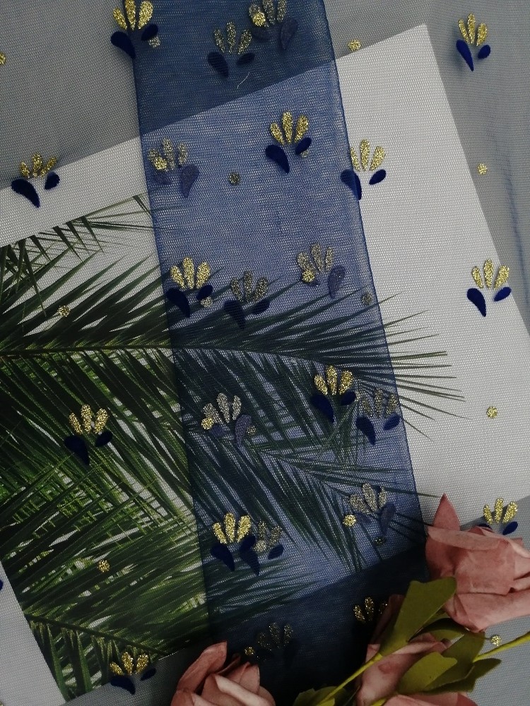 | Resaltar: | Tela impresa hoja azul real del 135CM,Tela impresa hoja reunida metálica,Tela reunida metálica del 135CM Tulle |