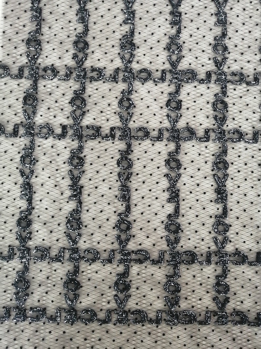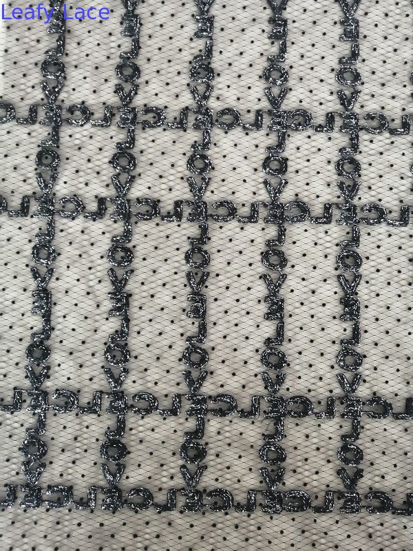 | Resaltar: | Tela metálica del cordón de Lurex del brillo,El negro se reunió la tela metálica del cordón,Tela de Tulle del brillo del negro de Lurex |