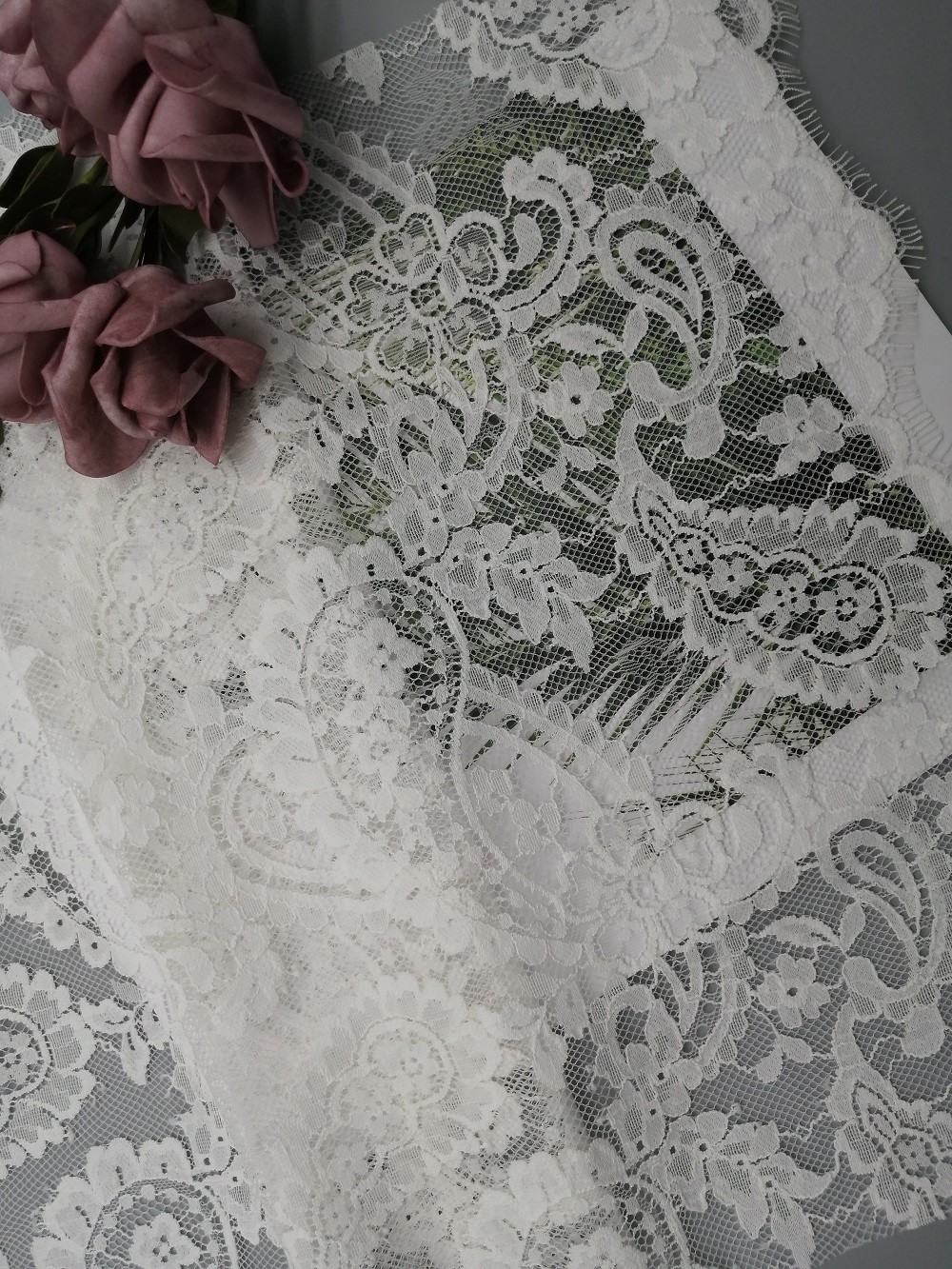 | Nombre de la producción: | Cordón francés de Chantilly | Estilo: | Cordón ligero de Paisley del cordón |