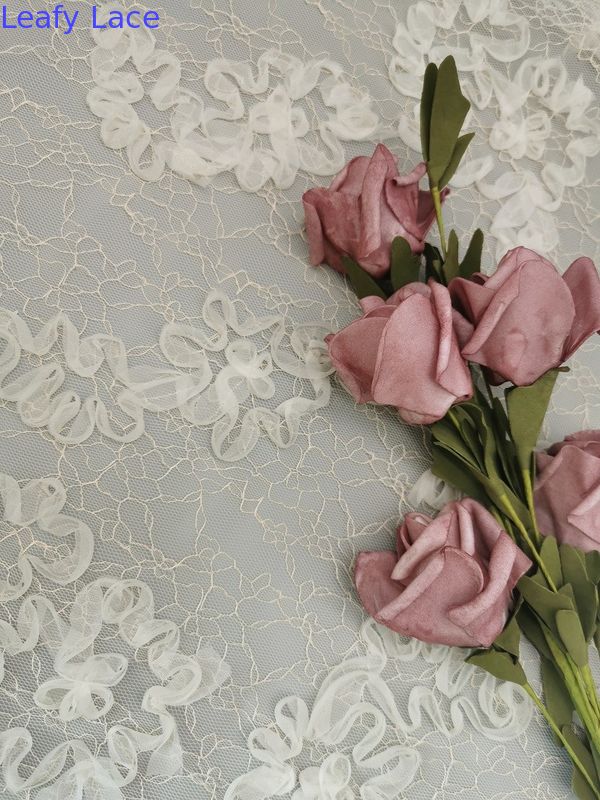 | Resaltar: | Tela atada del cordón del ganchillo,Tela de seda del cordón del ganchillo del bordado del 125CM,Tela atada del cordón del 125CM |