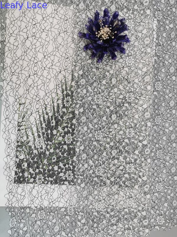 - El bordado de nylon de Tulle del ajuste del cordón del poliéster de la tela negra blanca del cordón de dos tonos puede cumplir el requisito del estándar 100 de OEKO-Tex.