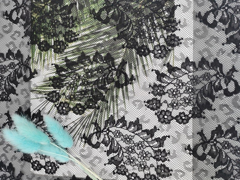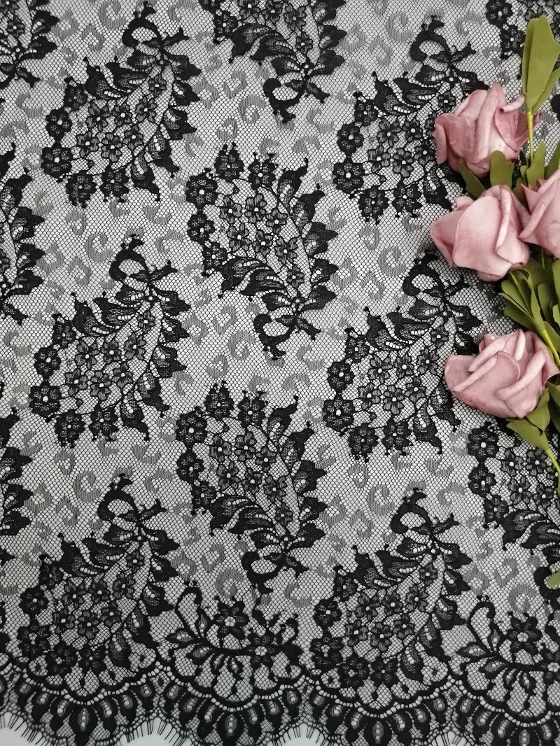 | Resaltar: | Tela ligera negra del cordón de Tulle,Tela francesa del cordón del 145CM Paisley,Tela del cordón de Tulle del peso ligero del 145CM |