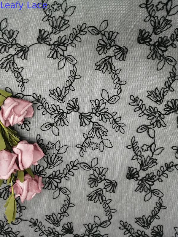 El bordado atado de la flor negra por todo tela del cordón platea la malla de Tulle o las mujeres bordean de largo los vestidos de las niñas de la ropa del vestido, las materias textiles caseras, la cortina, los artículos del lecho, las ropas, los sombreros, los vestidos de boda, las blusas, la camisa uniforme de los hombres, el etc.