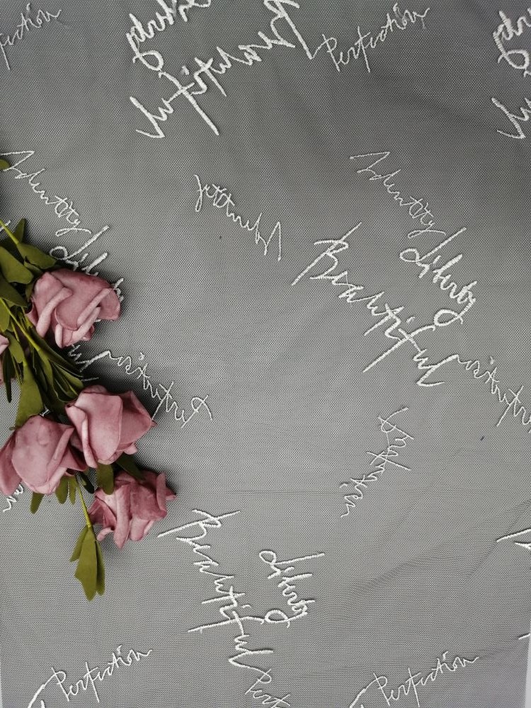 El cordón de la gasa del modelo de la letra bordó la malla del bordado de la tela de malla de Tulle para los vestidos largos de las niñas de la ropa del vestido de la falda de las mujeres, las materias textiles caseras, la cortina, los artículos del lecho, las ropas, los sombreros, los vestidos de boda, las blusas, la camisa uniforme de los hombres, el etc.