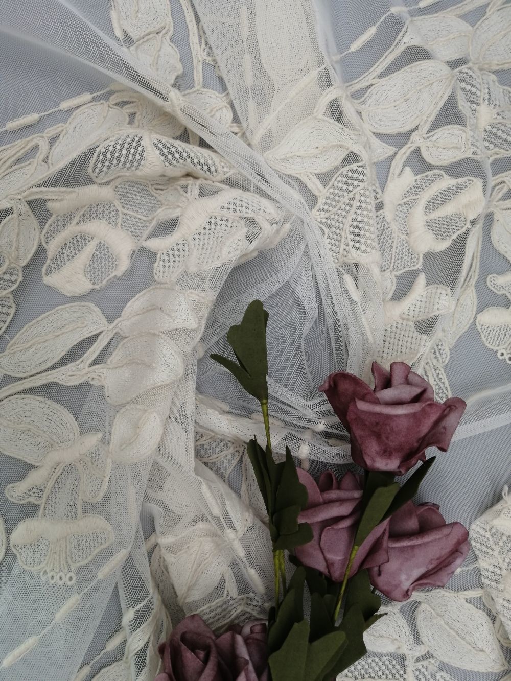 | Resaltar: | Tela atada del bordado beige del algodón,Tela atada del bordado del 125CM,Acueste la tela atada del paño floral de Tulle |