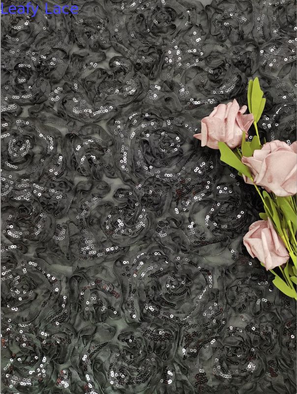 | Resaltar: | Tela bordada del cordón del vestido de noche,Tela bordada negra del cordón del poliéster,OEKO-TEX bordó la tela del cordón de la lentejuela |
