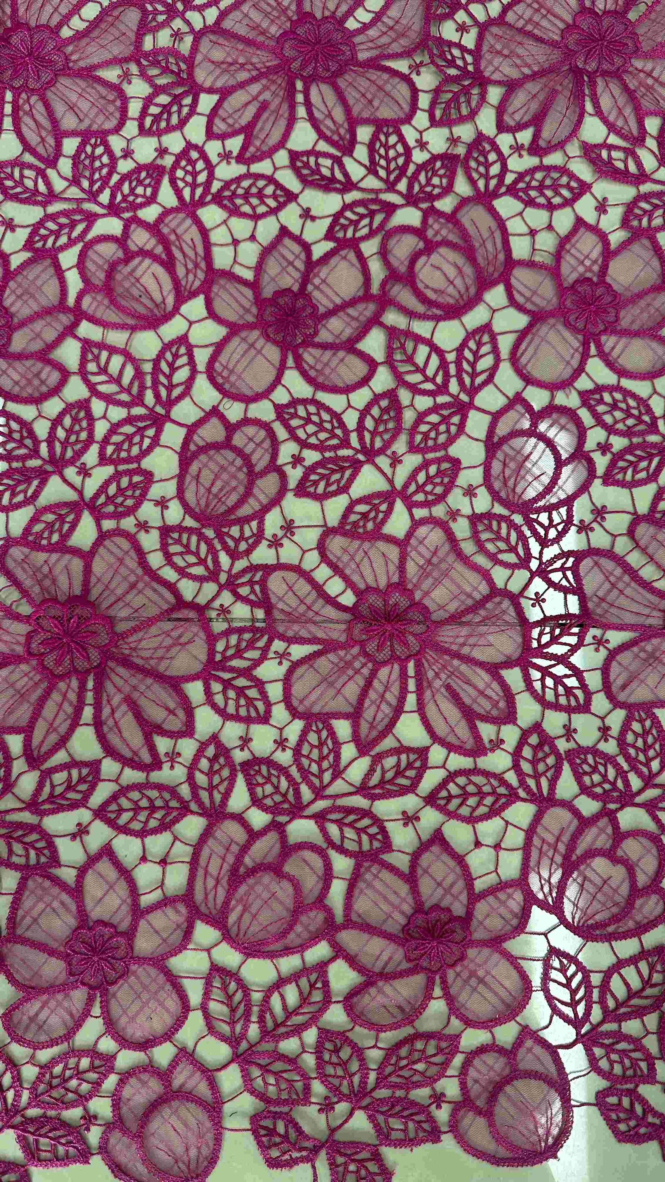 Fabricación de encaje de bordados florales químicos de Fushcia ancho 119 cm