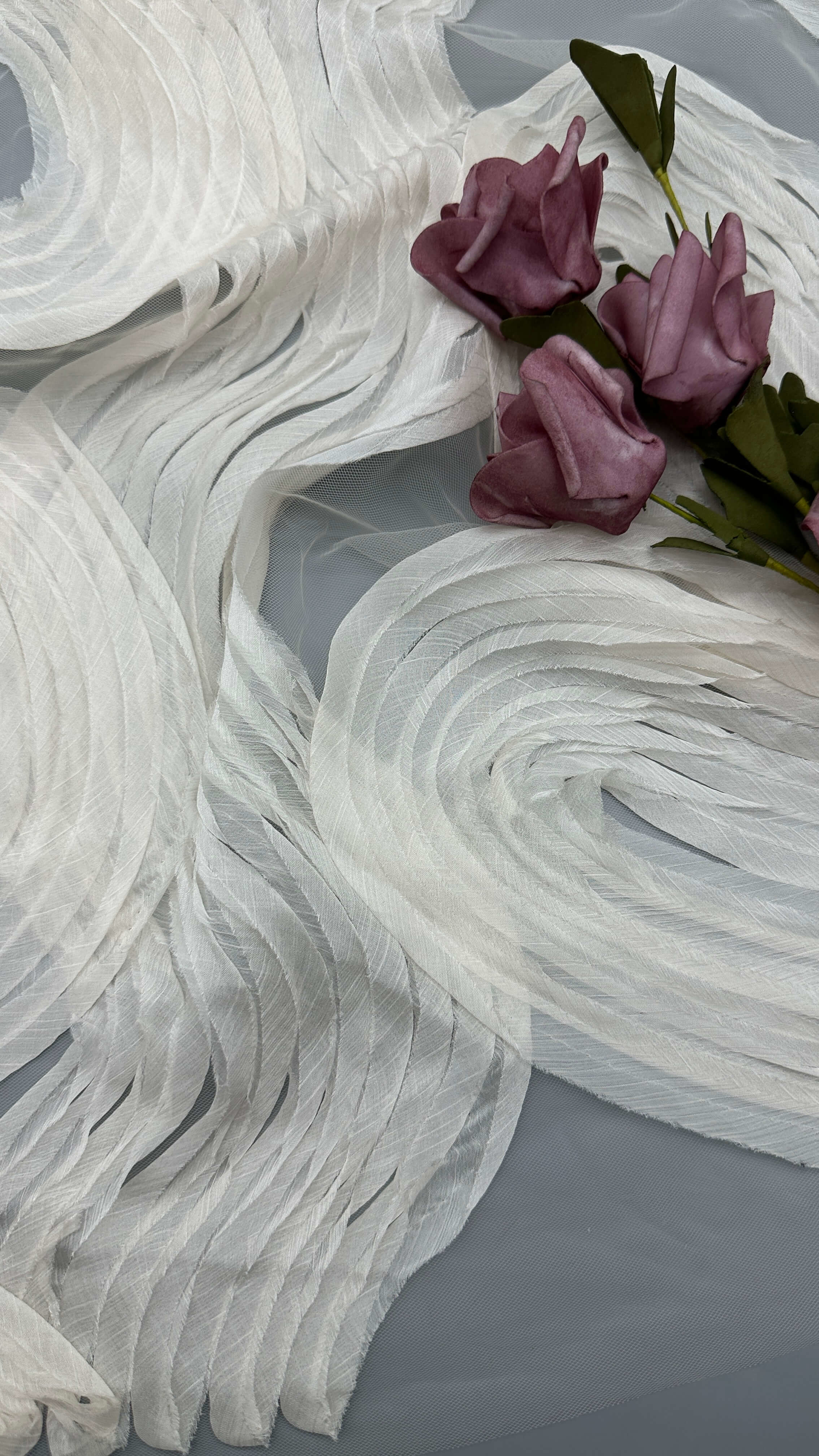 | Resaltar: | Tejido de encaje de lujo con pliegues blancos,Tejido de bordado plissado elegante,Tejido de ocasión de bodas duradero |