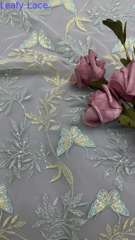 | Resaltar: | Tejido de encaje de bordado de mariposa,Elegante tejido de encaje bordado,Tejido de encaje 100% algodón |