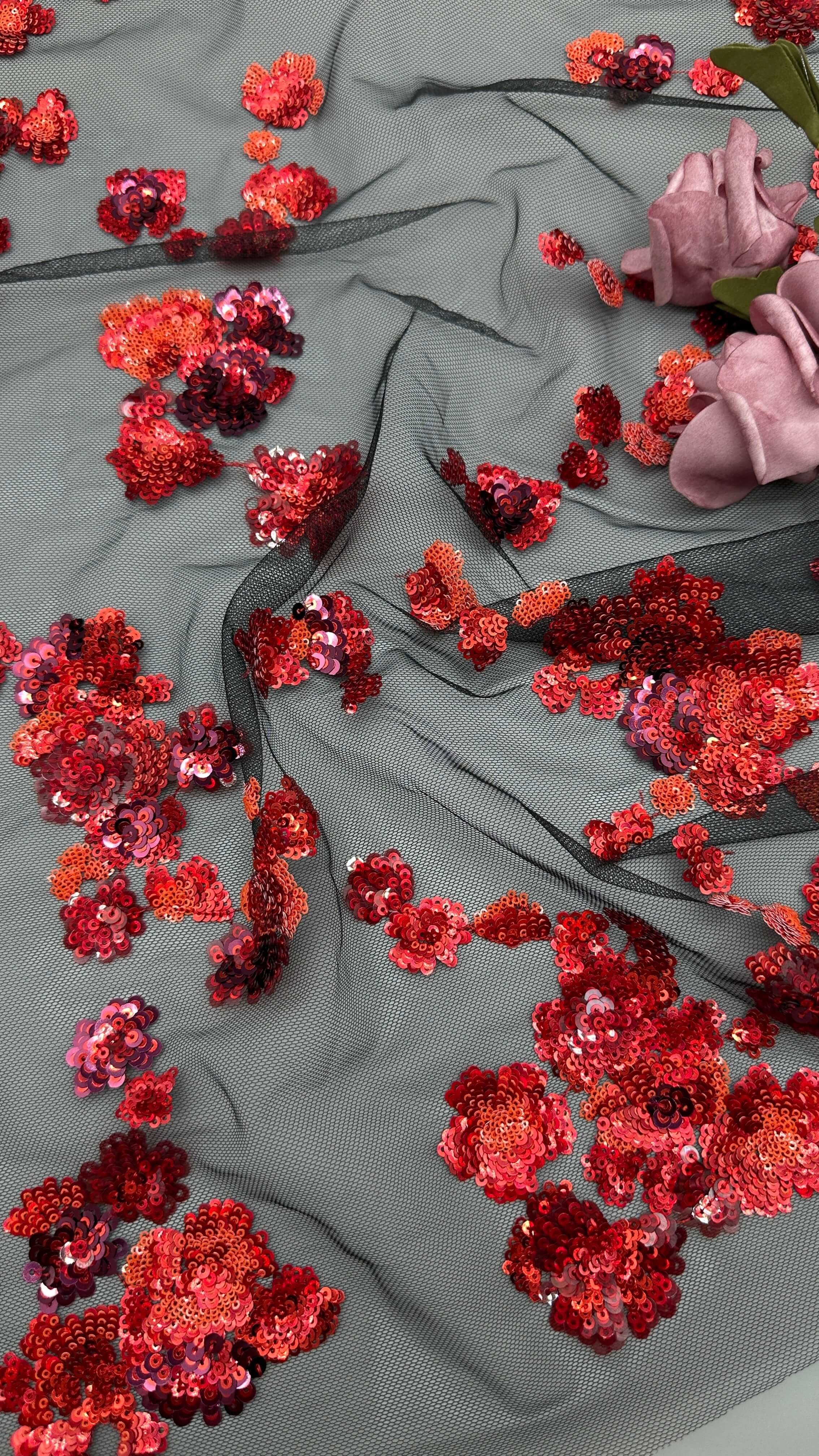 | Resaltar: | Tejido de encaje bordado de seda floral 3D,Tejido de encaje bordado de paleta roja,Tejido de encaje bordado |