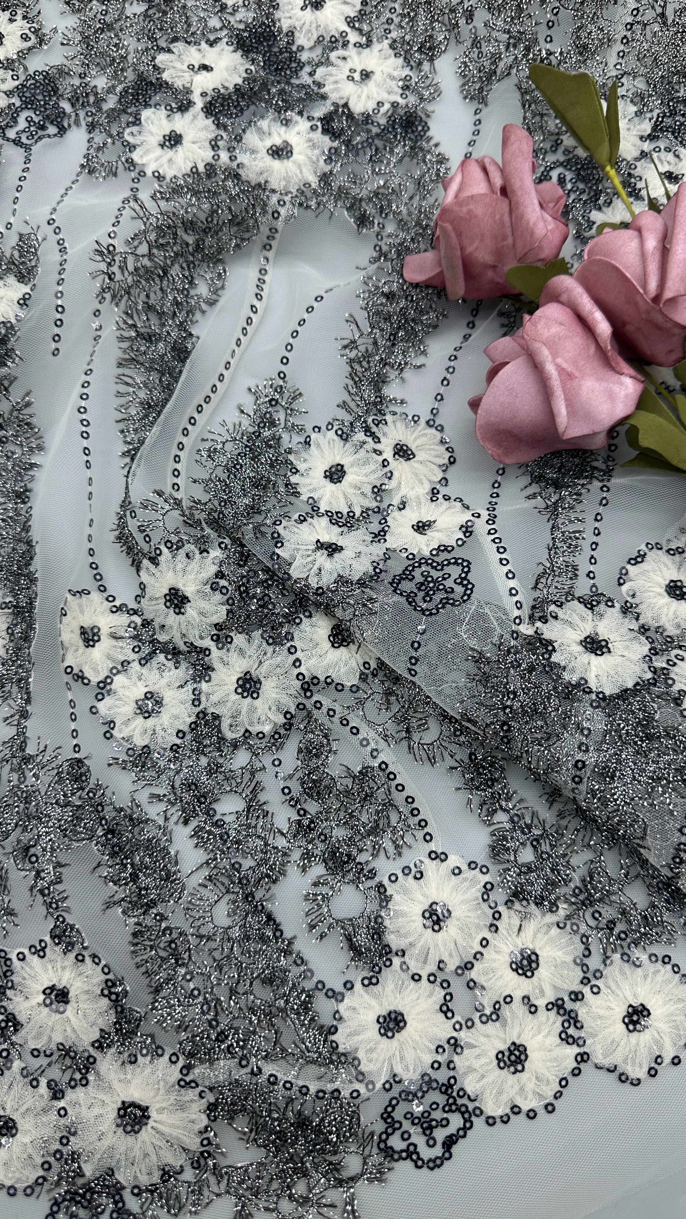 | Resaltar: | Tejido de encaje metálico bordado con spandex,Tejido de encaje metálico de alta calidad,Elegante tejido de encaje metálico |