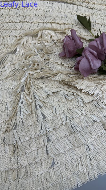 | Resaltar: | Tela bordada con lentejuelas para bodas,Tela de lentejuelas para ocasiones de lujo,Tela de boda con borlas bordadas |