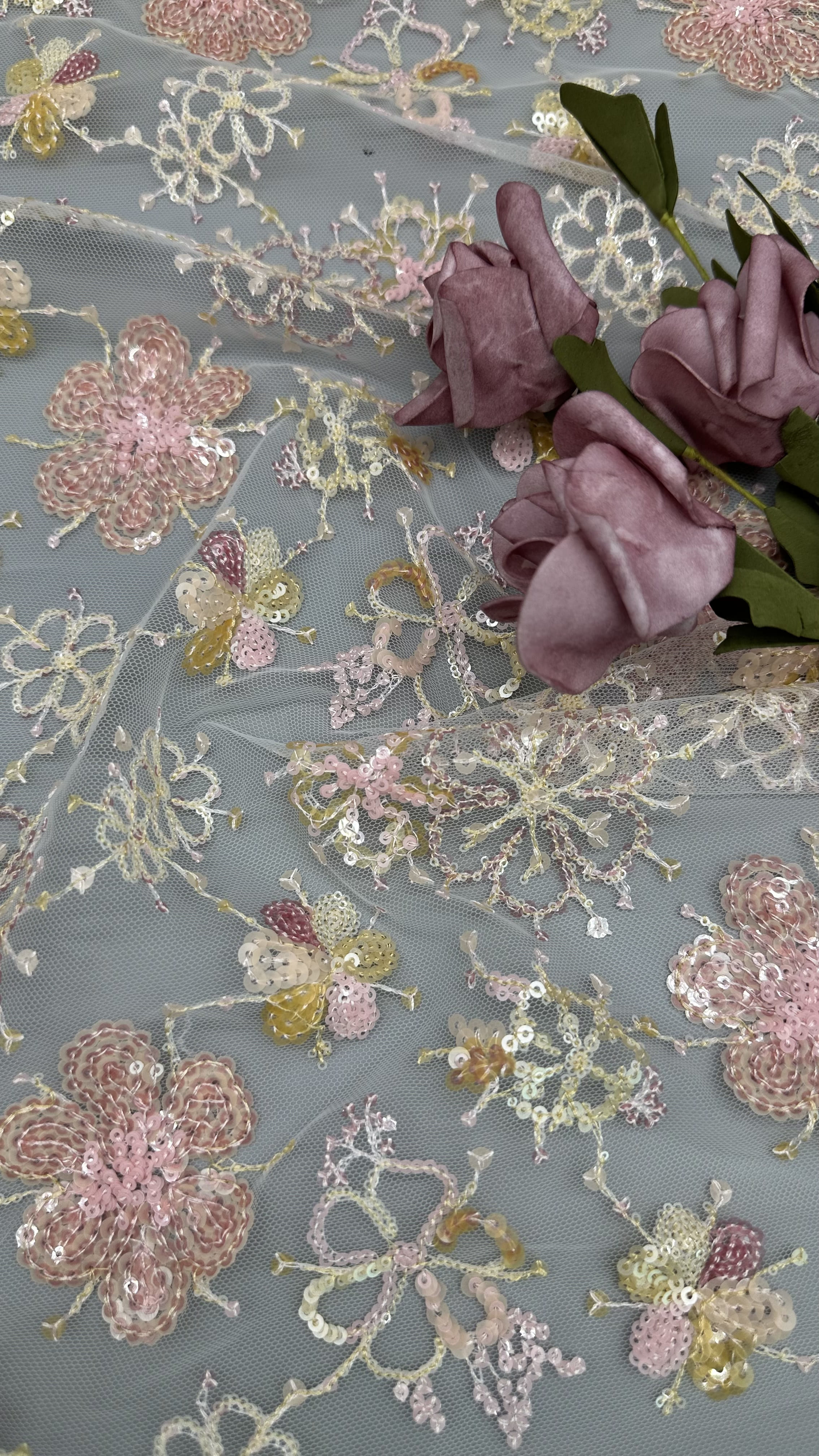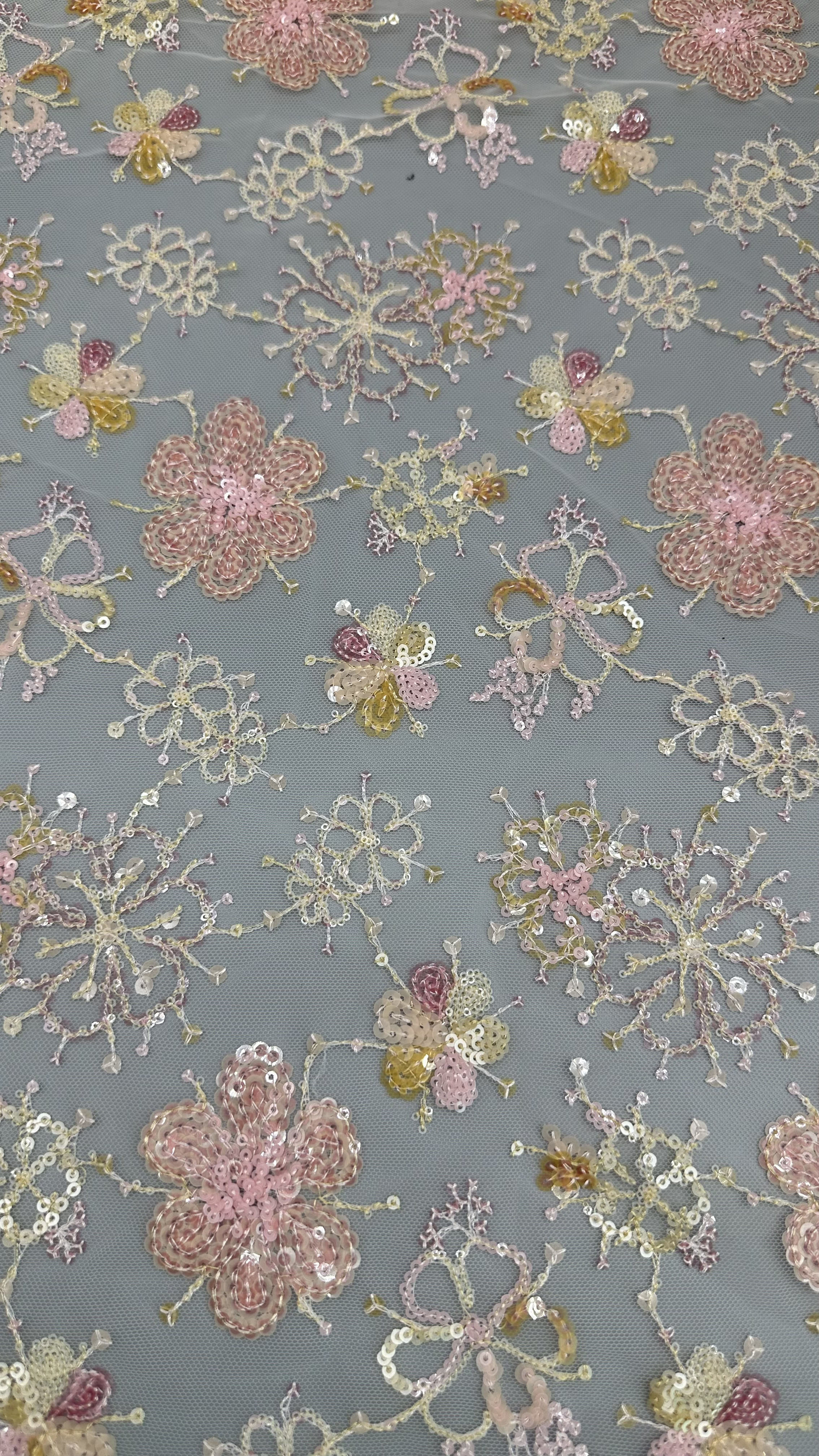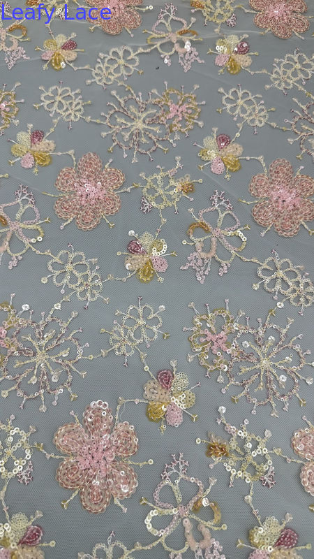 | Resaltar: | Tejido bordado de seda de lujo para ocasiones,Tejido bordado de paletas de seda,Tela bordada de la lentejuela frondosa |
