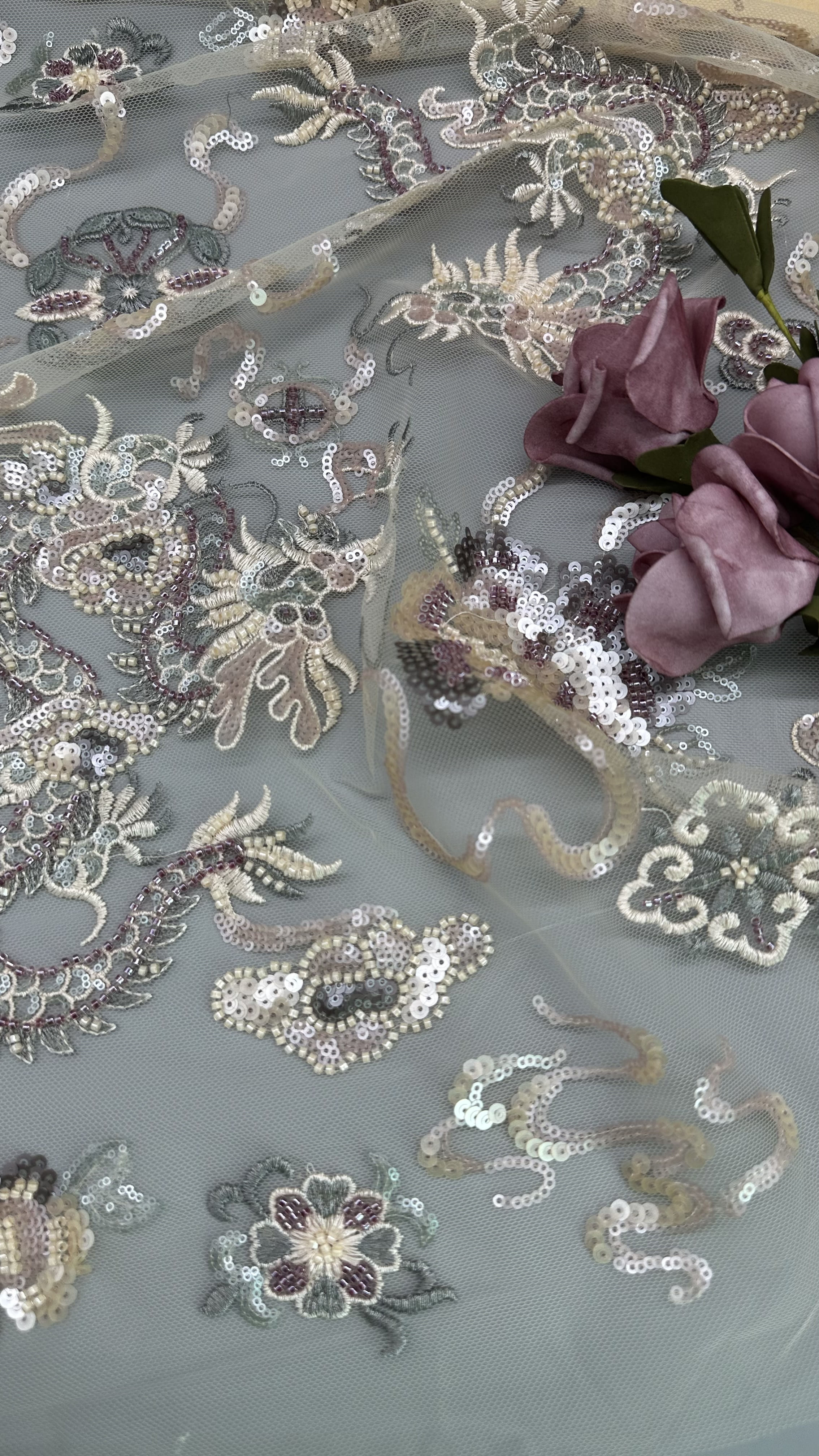 Resaltar: | Tejido de encaje de malla bordada sobre malla,Tejido de encaje de malla bordada con lentejuelas |