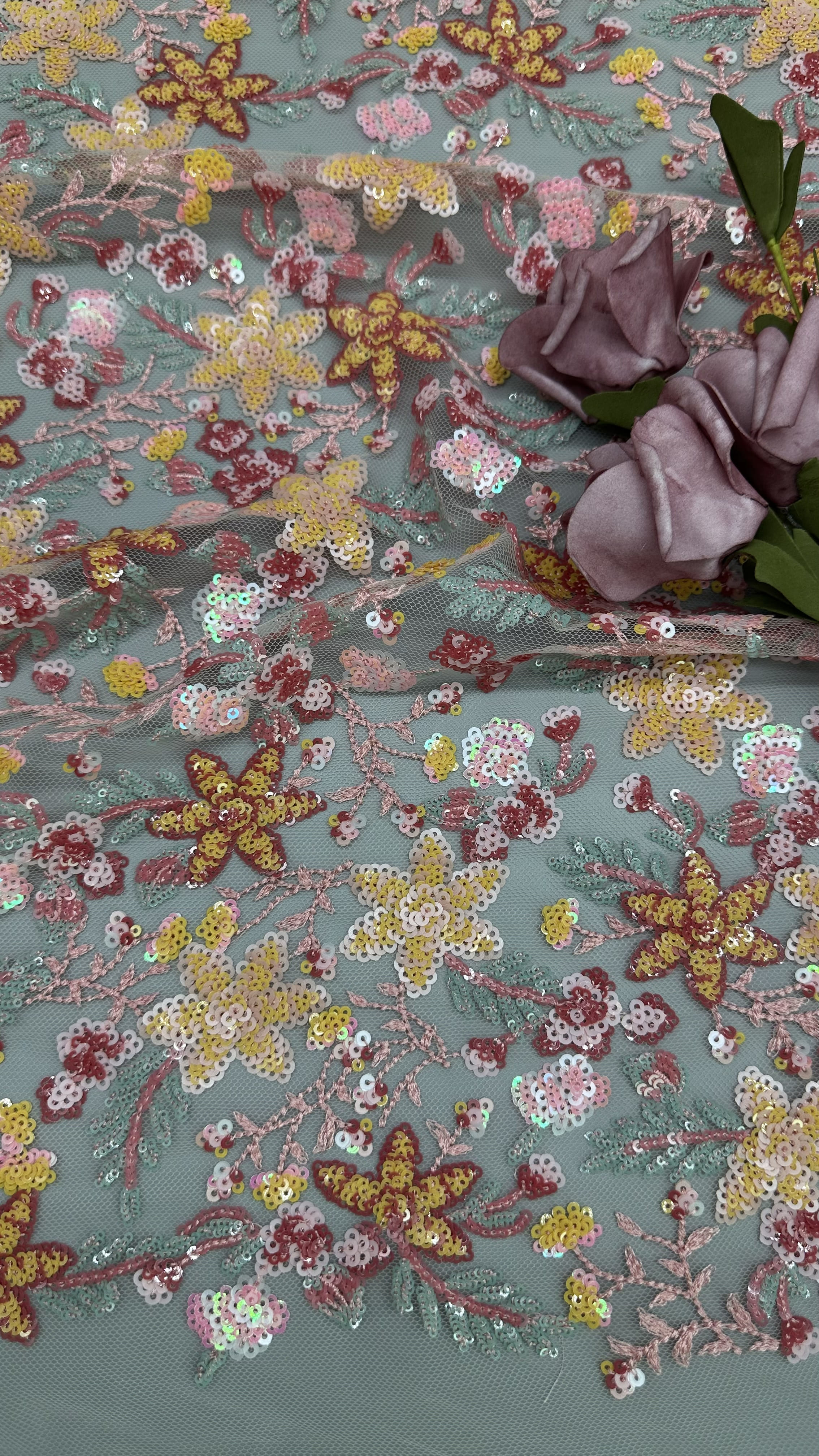 Resaltar: | Tejido de encaje de flores 3D,Tejido bordado de paletas coloridas,tela del cordón del poliéster |