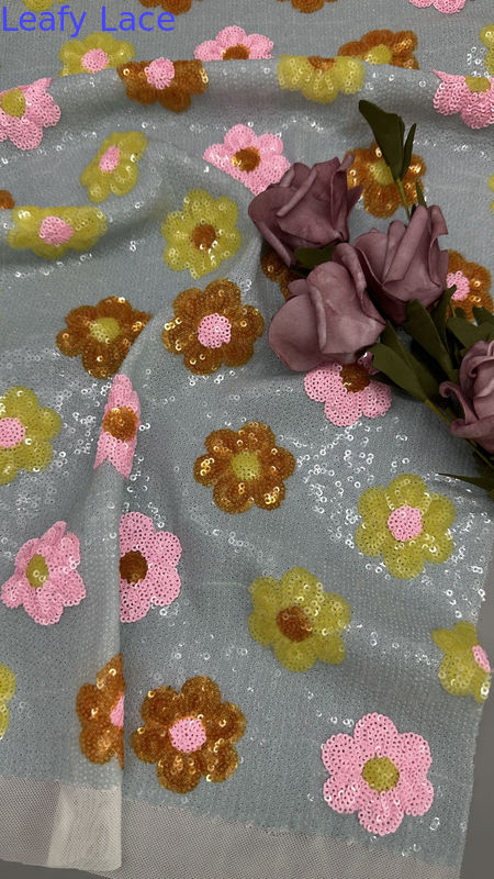 Resaltar: | Ropa de encaje floral 3D,Tejido de encaje floral 3D,Tejido de lujo de seda de encaje floral 3D |