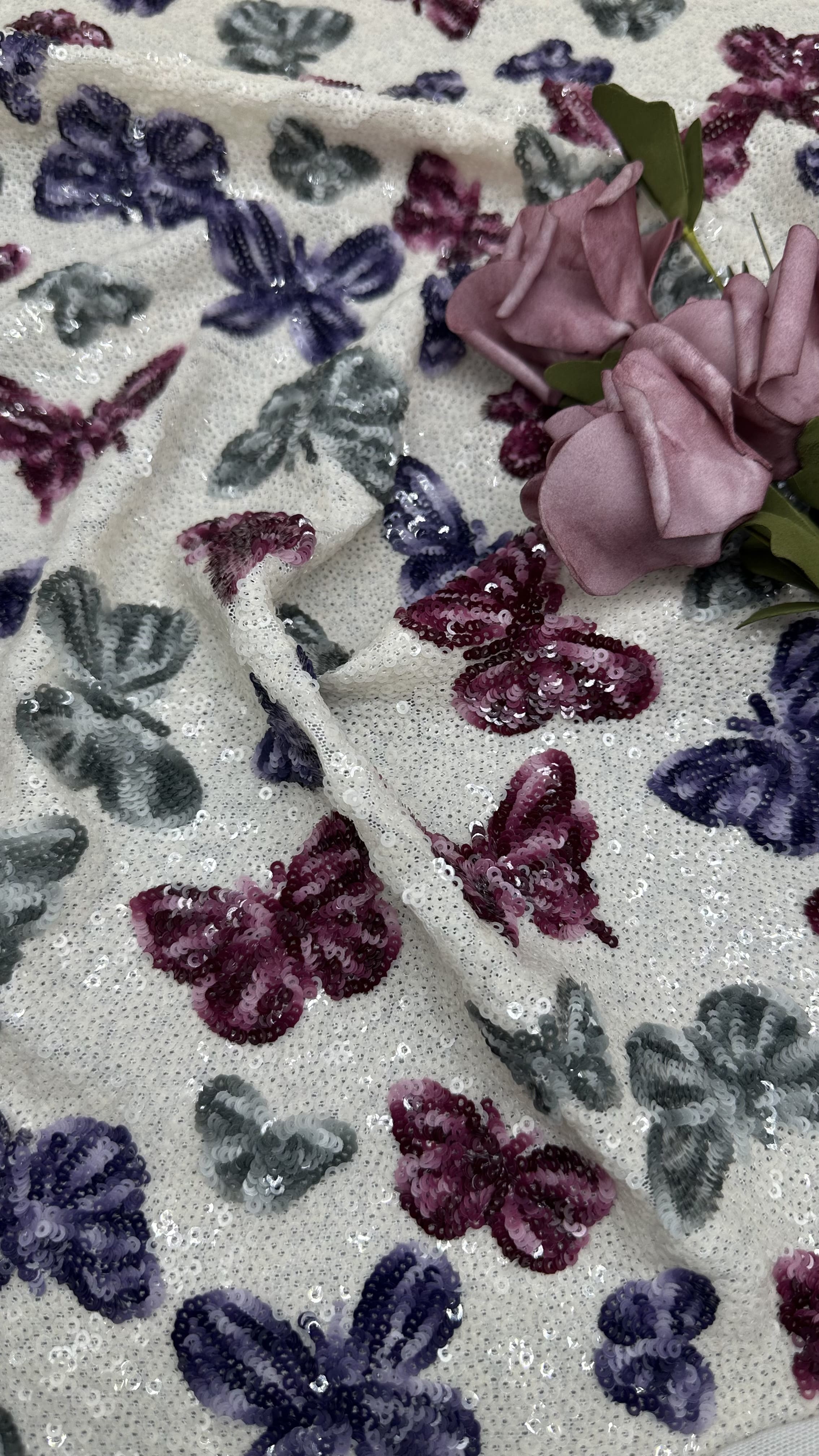 Resaltar: | Tejido bordado de lentejuelas de mariposa,Tejido de encaje de malla para vestidos,Tejido de lentejuela de diseño de moda |
