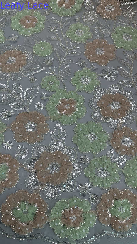 | Resaltar: | Tejido de encaje bordado de paletas de hojas,Tejido de encaje bordado de seda de poliéster,Tejido de encaje de malla floral |