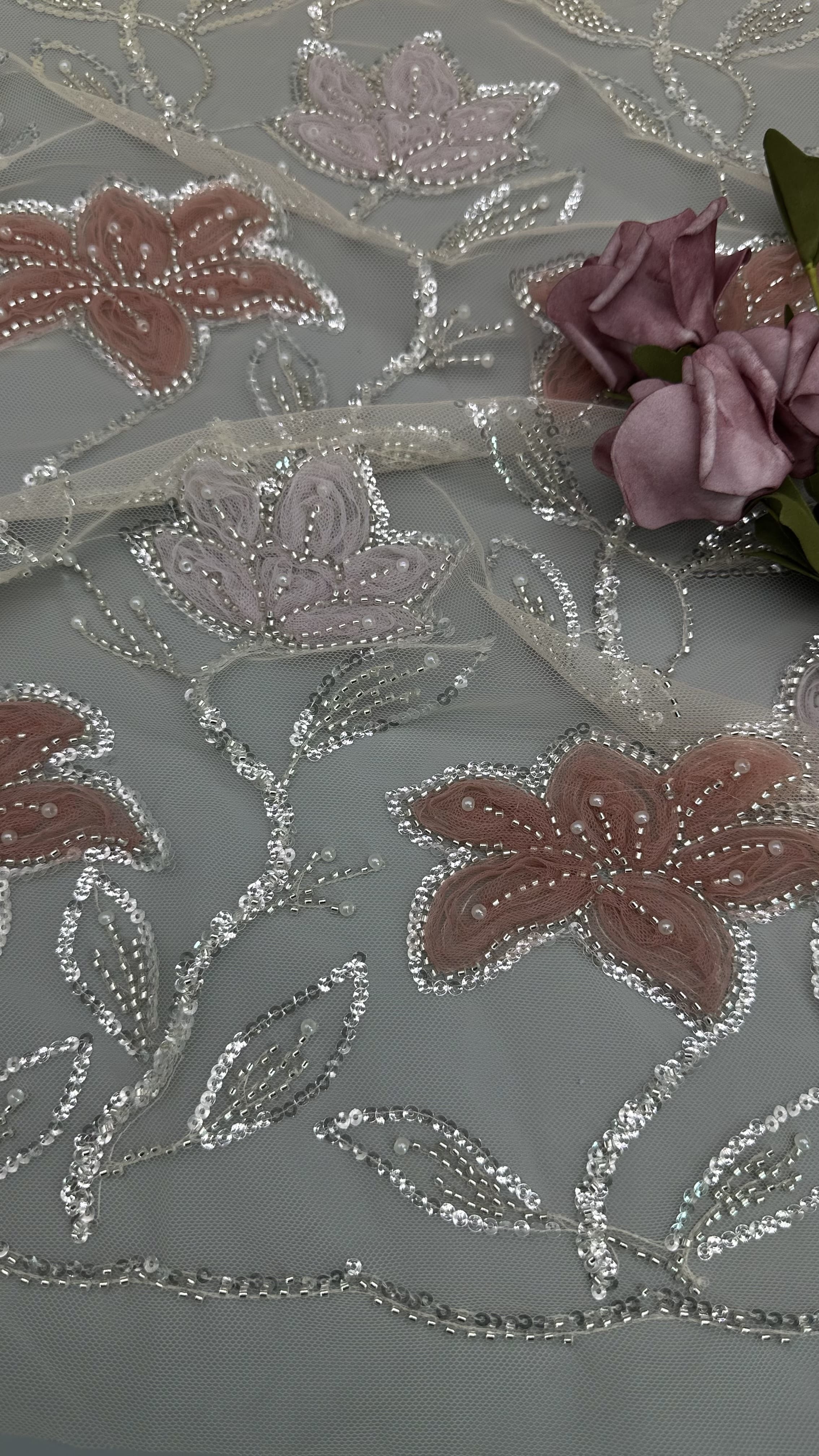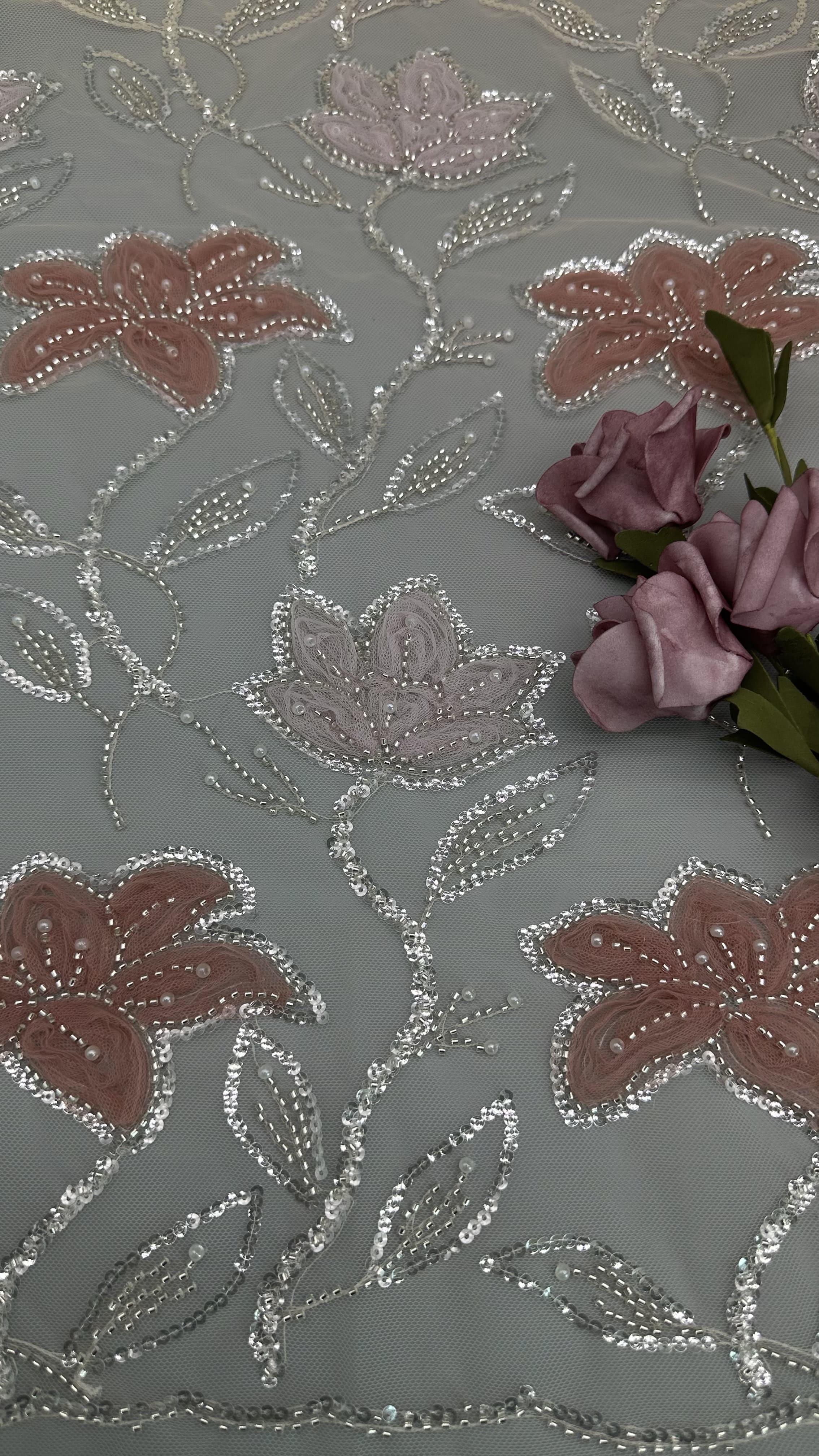 | Resaltar: | Tejido de encaje bordado con perlas,Tejido de encaje de poliéster con cuentas hueco |