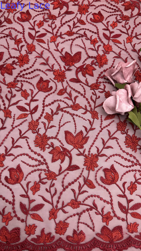 | Resaltar: | Tejido de encaje bordado de color rojo,Tejido de encaje bordado de hojas,Tejido de encaje bordado con malla |