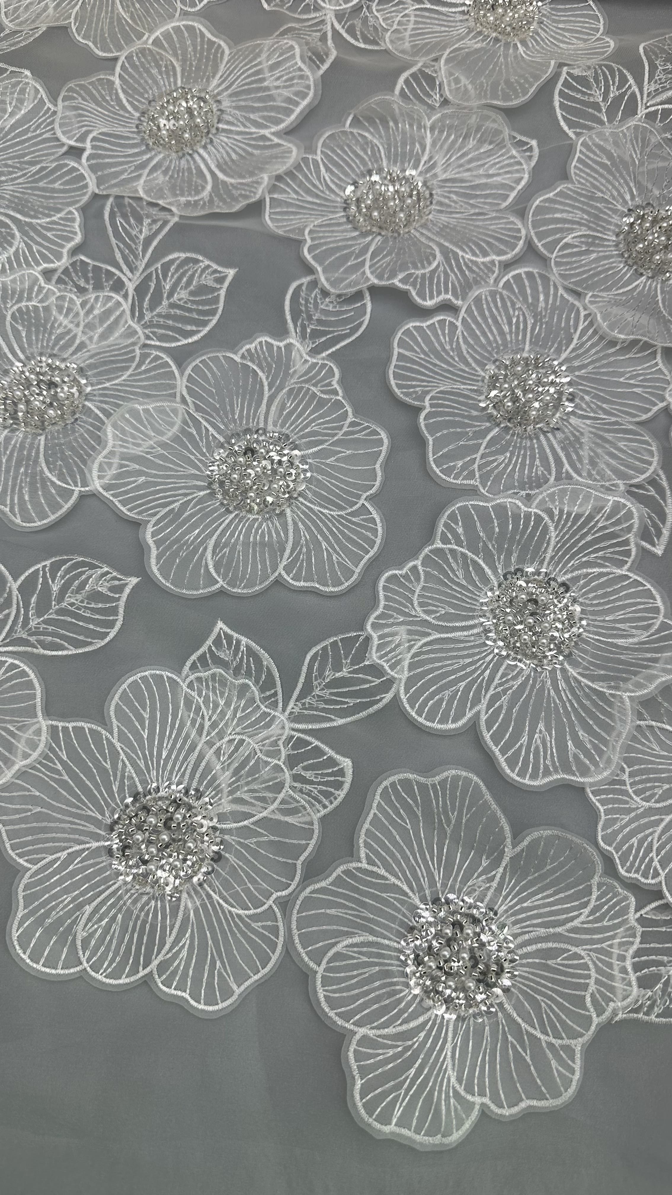 Resaltar: | Tela de bordado con cuentas de poliéster,Tela con cuentas personalizada para vestidos de gala,Tela de bordado brillante para vestidos |