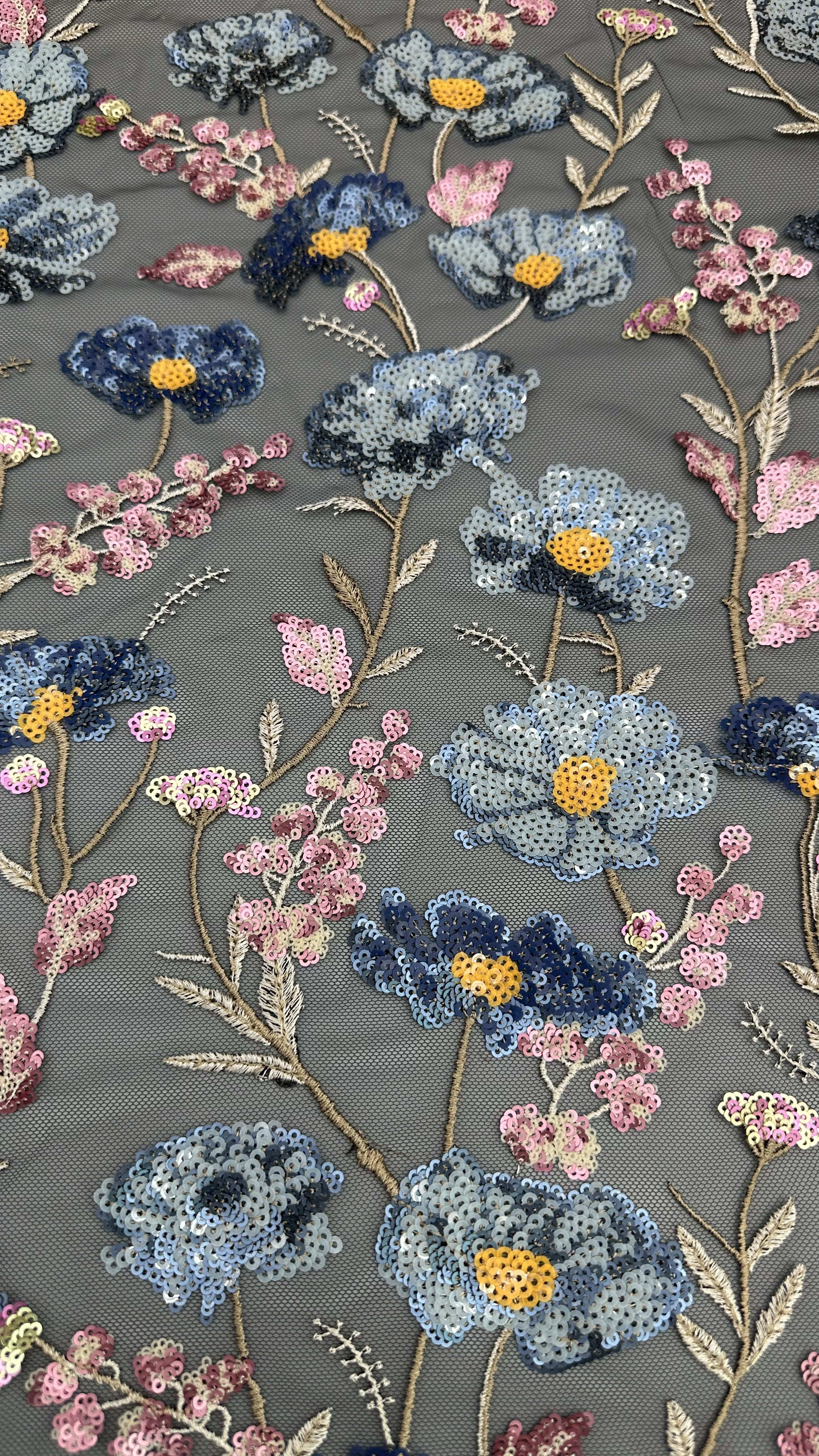 | Resaltar: | Tejido de lentejuelas florales 3D,Tejido de fiesta bordado con lentejas,Tejido para vestidos de lujo de lentejuelas |