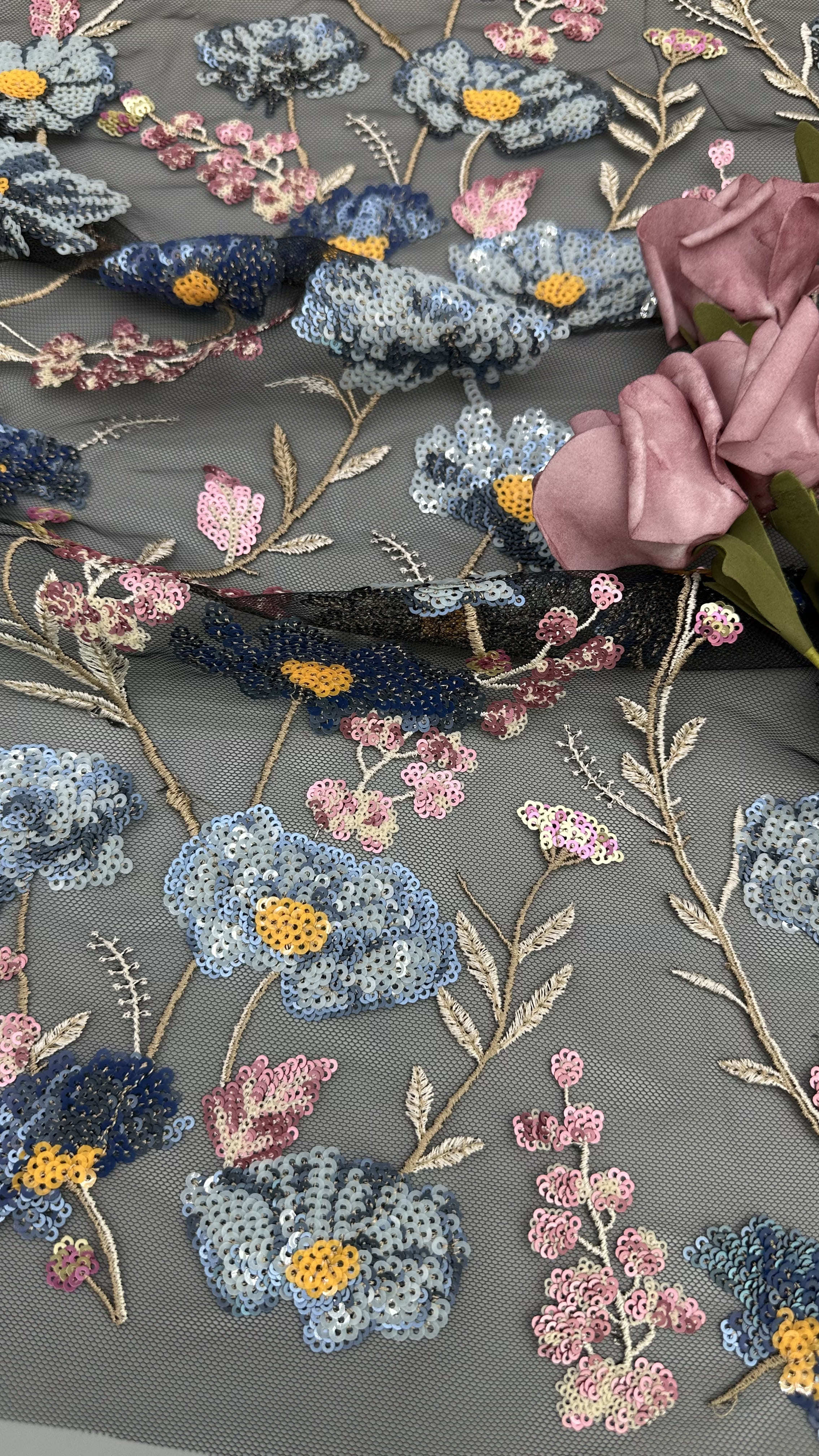 | Resaltar: | Tejidos de encaje bordado de seda,tejido de malla personalizado,tejido elegante con lentejuelas |