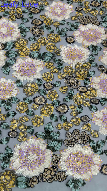 | Resaltar: | tela de encaje bordada con lentejuelas florales,tela de malla elegante personalizada,tela bordada con lentejuelas de la nueva colección |