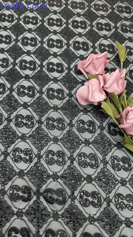 | Resaltar: | tejido de encaje bordado para vestidos de cena,tejido de encaje con hojas y base de malla,tejido de encaje de diseño especial para vestidos |