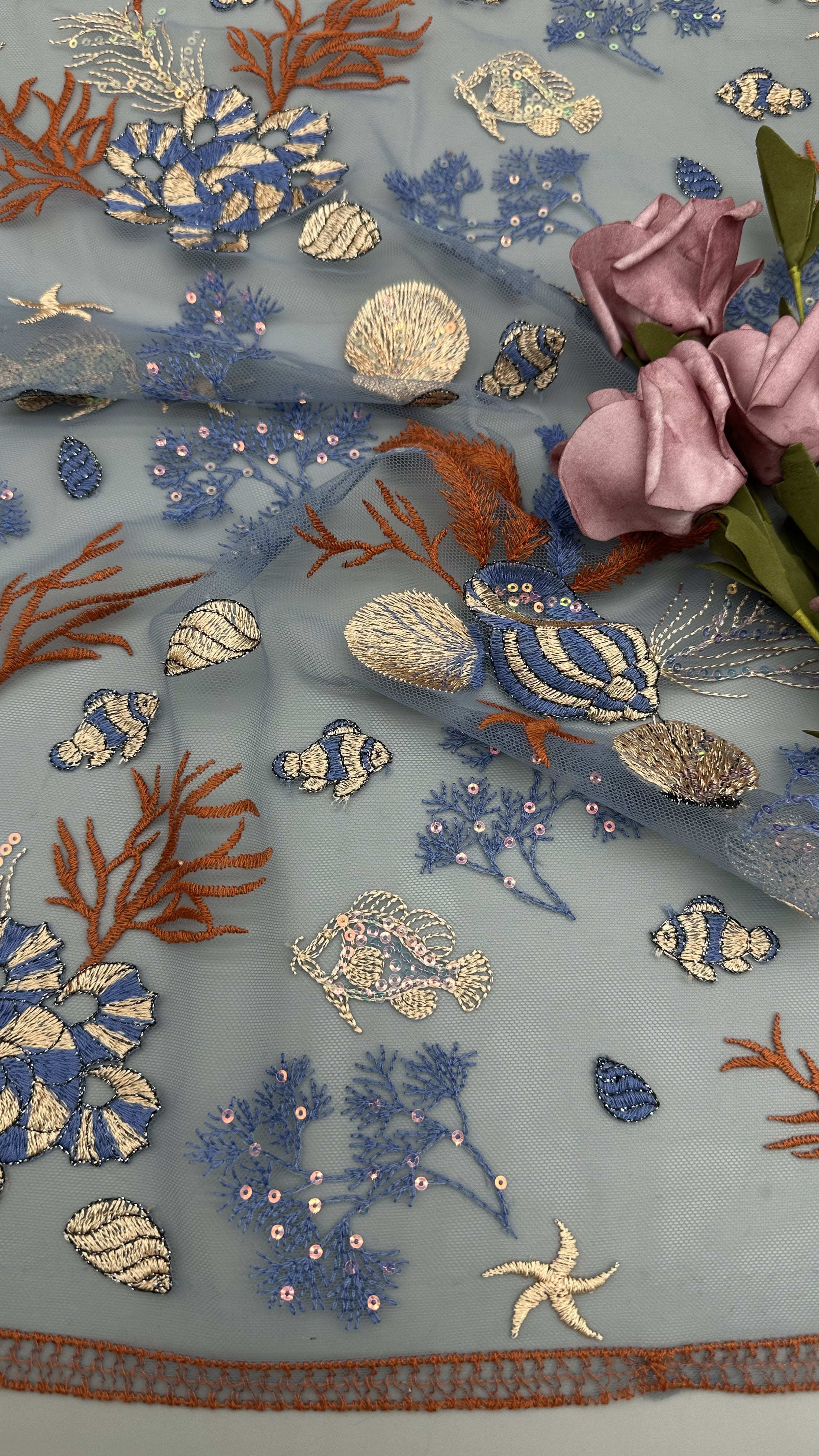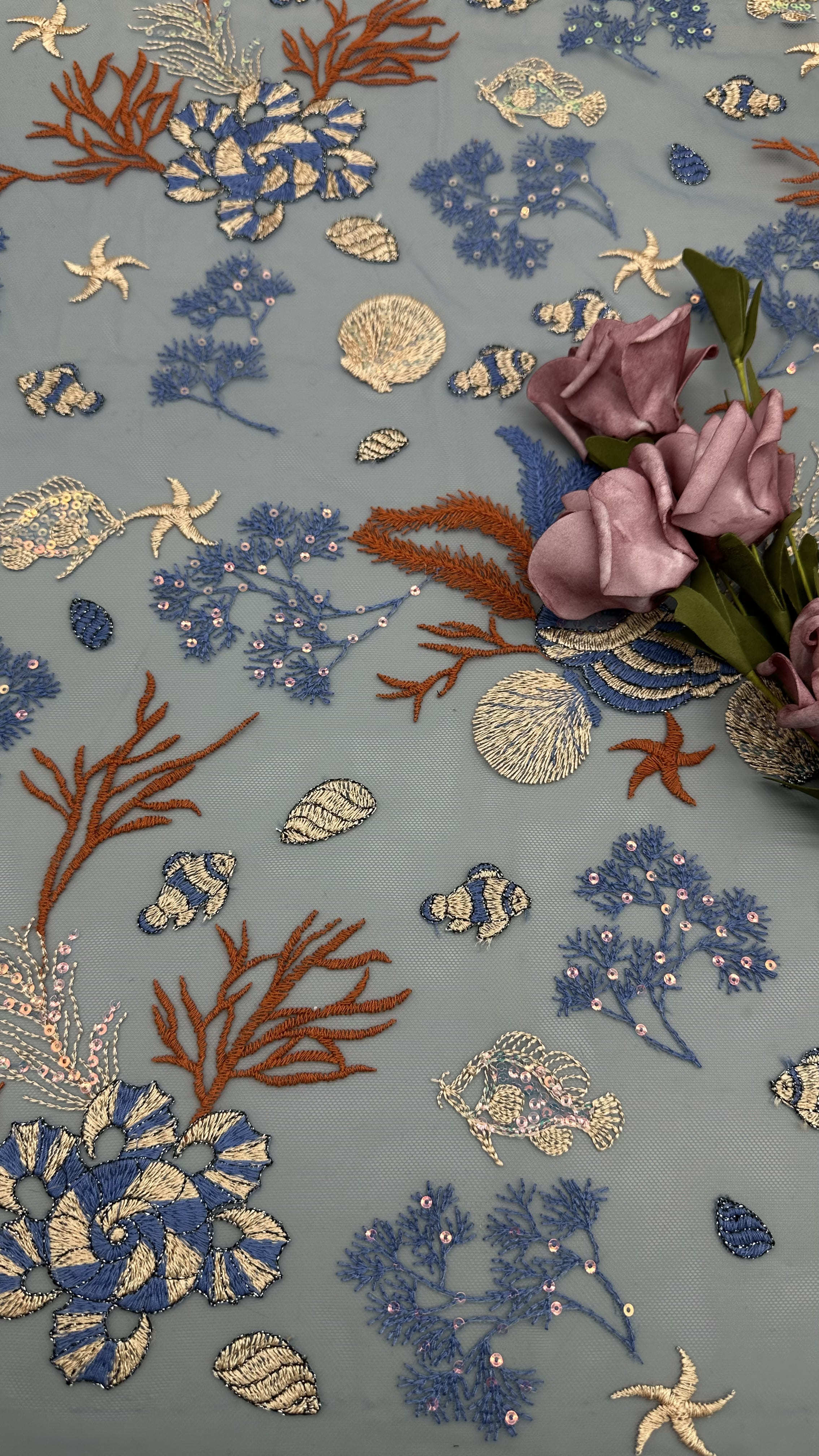 | Resaltar: | tela de encaje bordado para vestidos de fiesta,Tejido de pescado de mar bordado para respirar,Tejido de malla de lujo de la cultura china |