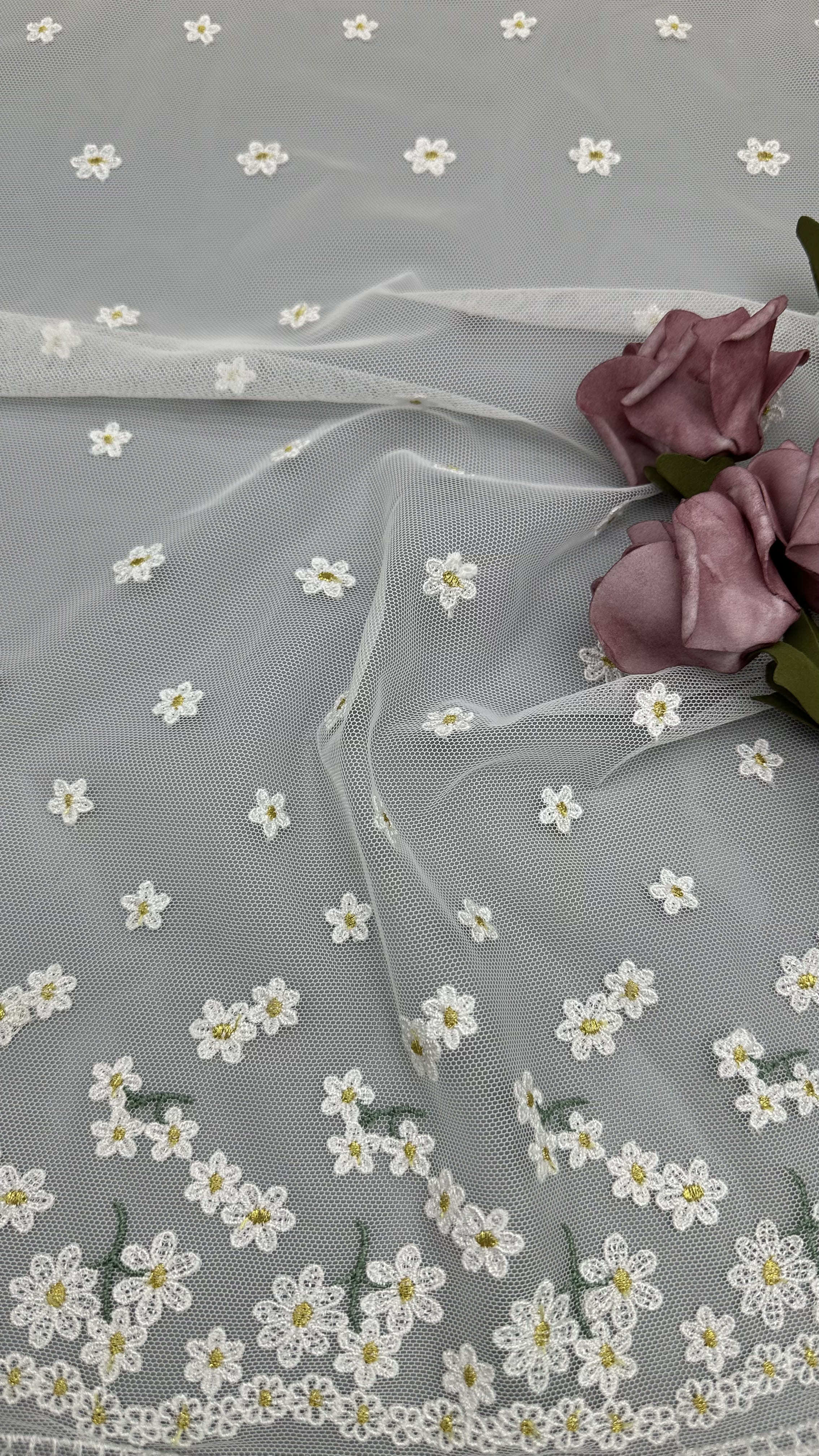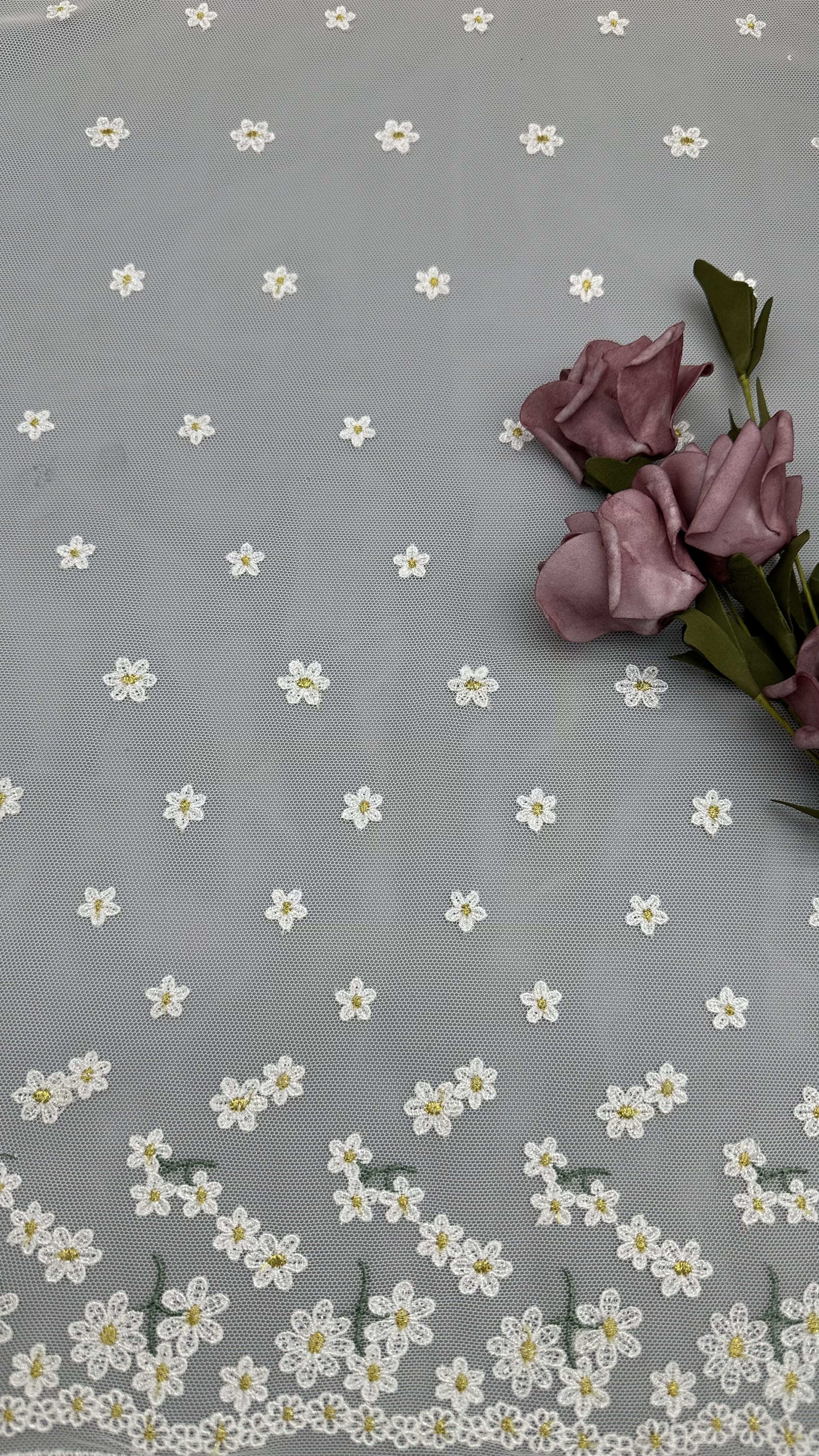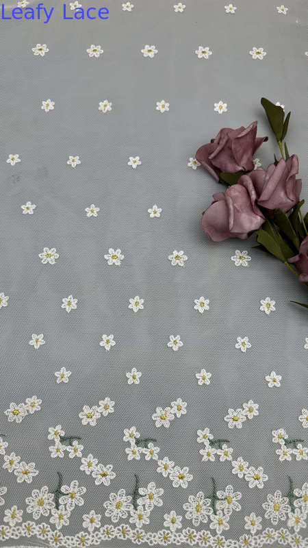 El tejido bordado de encaje con delicados motivos de hojas es una opción popular para vestidos de boda y de fiesta, que ofrece elegancia, textura y detalles intrincados.La tecnología de producción es una mezcla de artesanía tradicional e innovaciones textiles modernas.