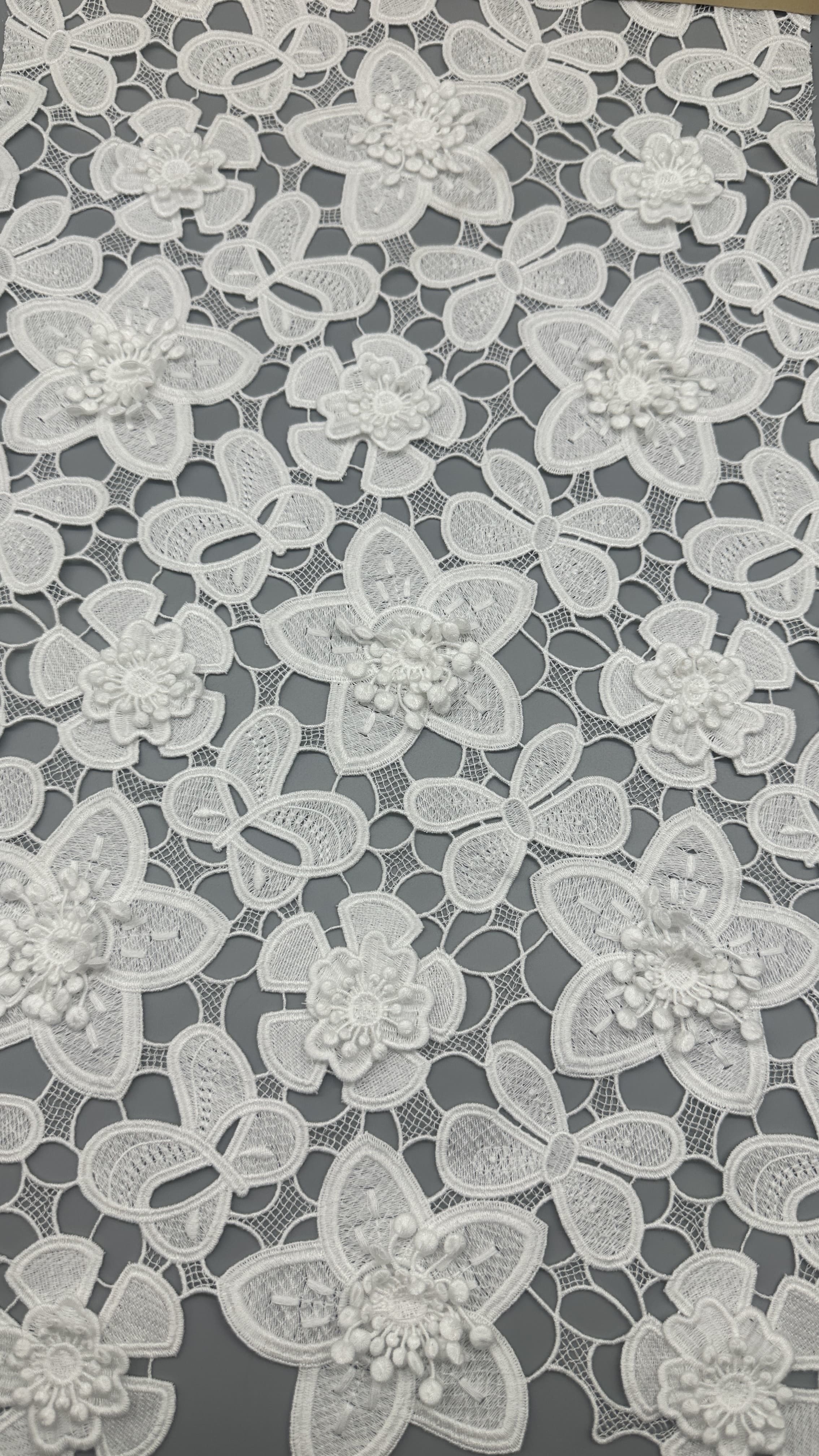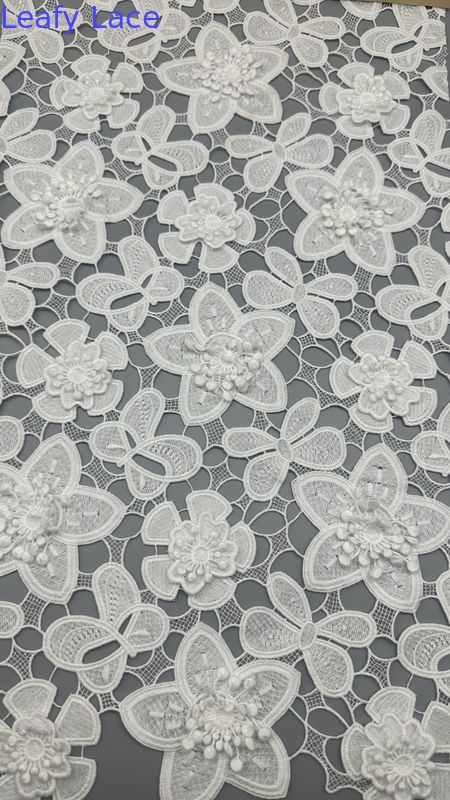 El tejido bordado de encaje con delicados motivos de hojas es una opción popular para vestidos de boda y de fiesta, que ofrece elegancia, textura y detalles intrincados.La tecnología de producción es una mezcla de artesanía tradicional e innovaciones textiles modernas.