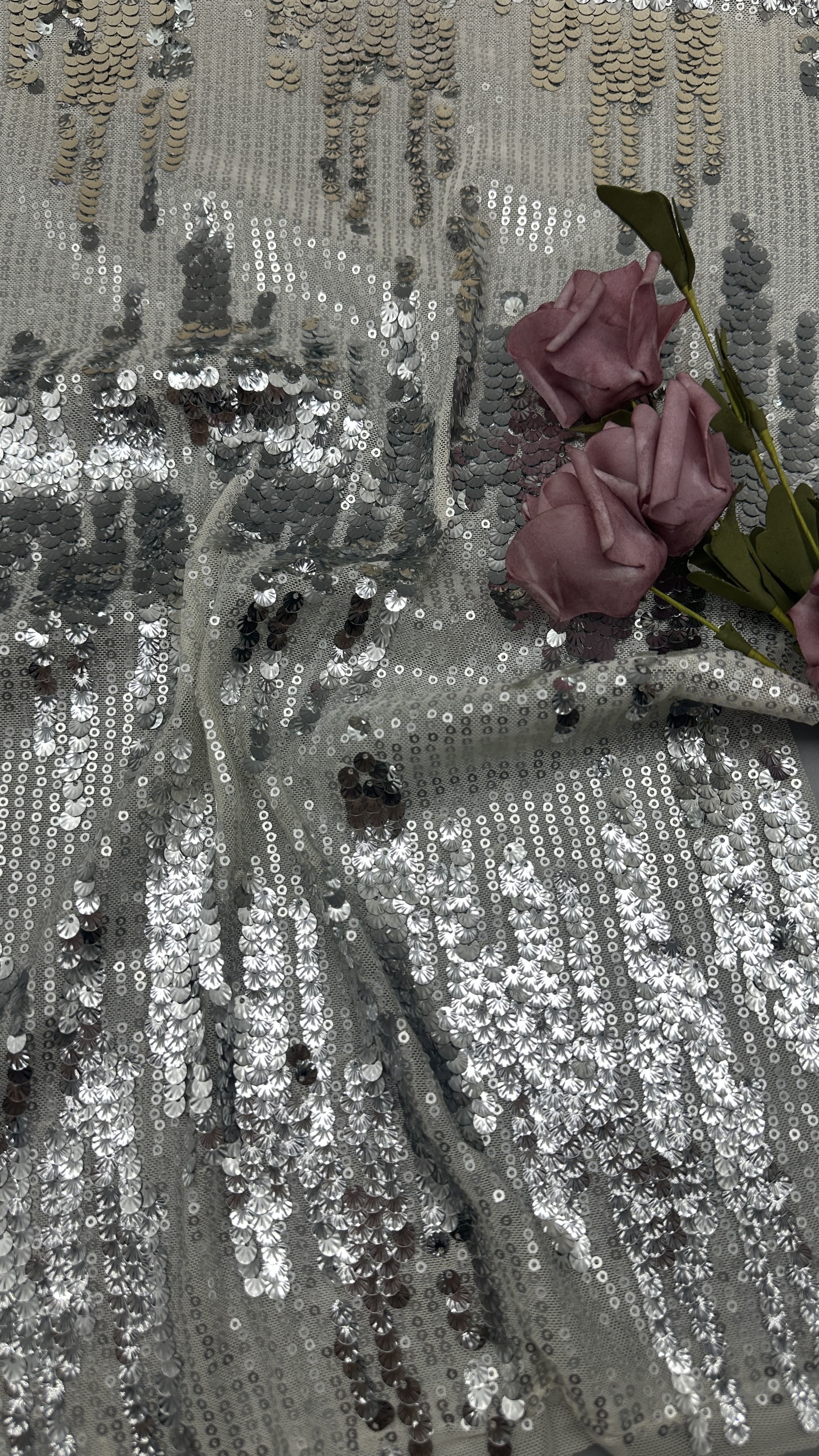 Resaltar: | Tejidos de encaje bordado de seda,tejido para vestido personalizado,tejido de lentejuelas de color brillante |