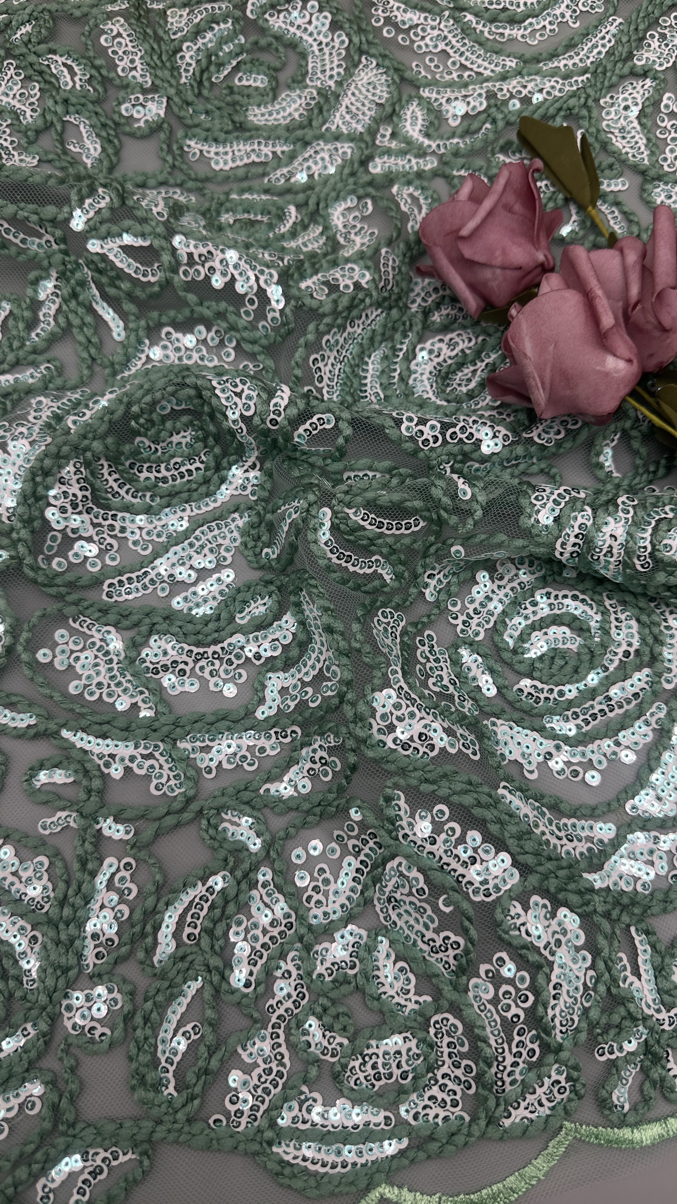 | Resaltar: | sequin embroidered lace fabric,3D floral design fabric,customized fabric for gowns |