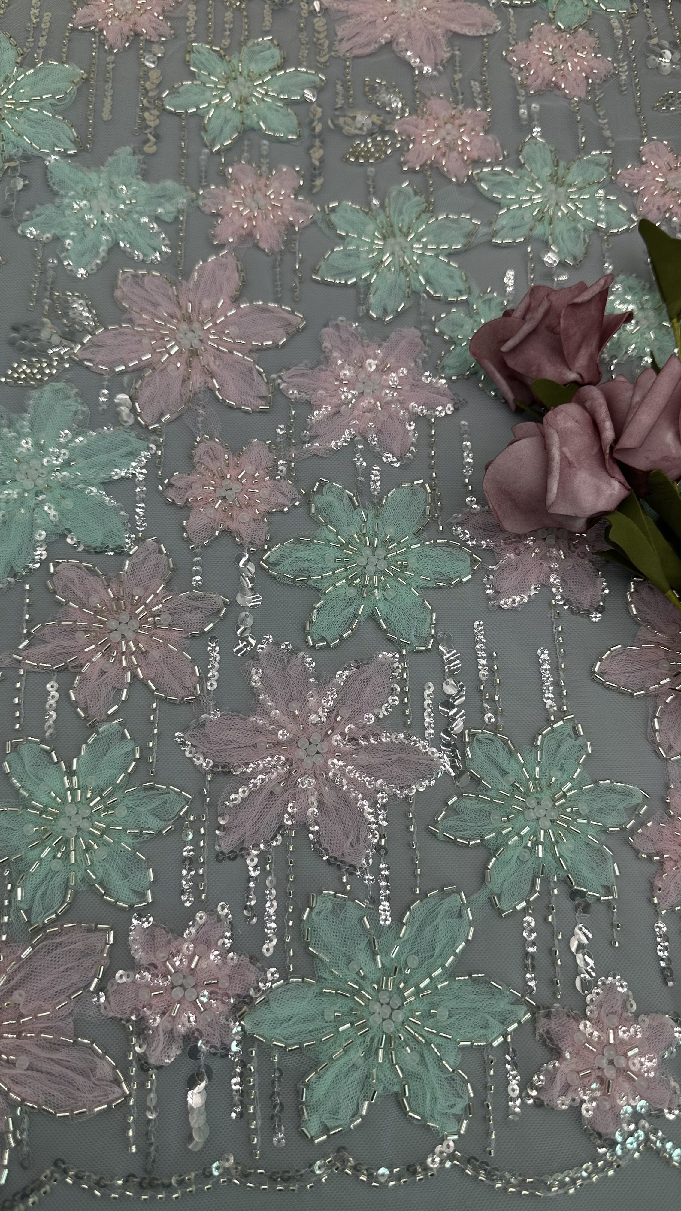 Lace embroidery fabric with delicate leafy motifs is a popular choice for wedding and party dresses, offering elegance, texture, and intricate detailing. The technology behind its production involves a blend of traditional craftsmanship and modern textile innovations.