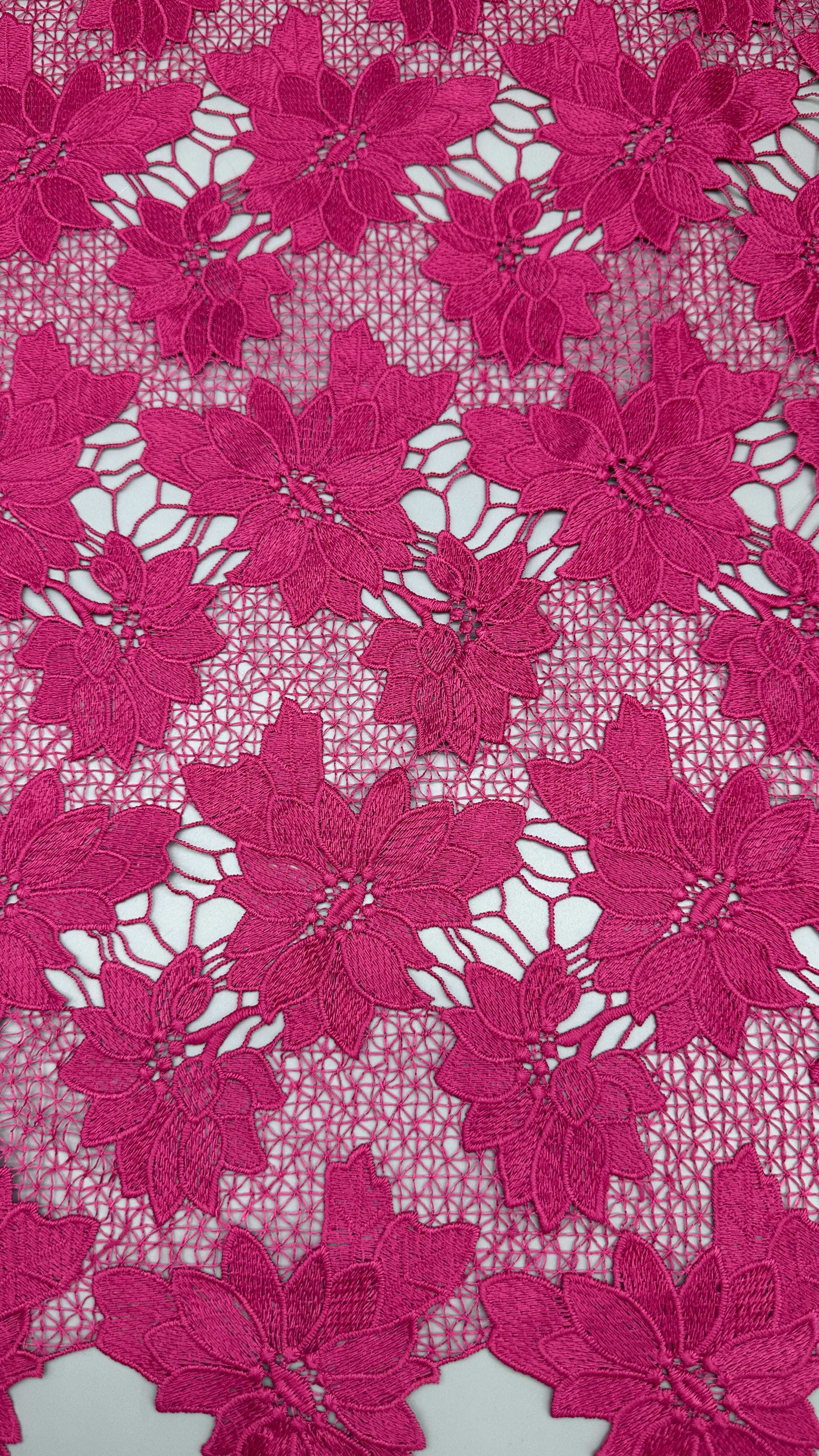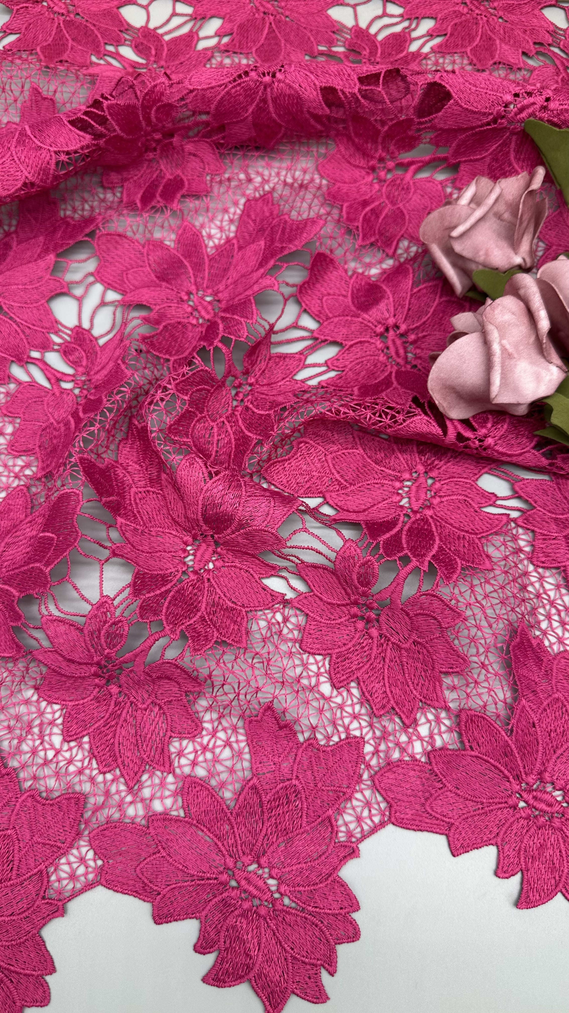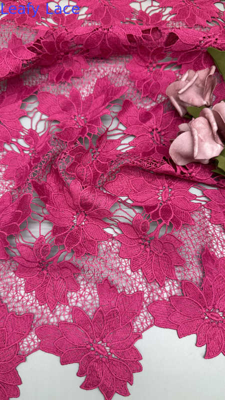 | Resaltar: | Tela de encaje guipur para vestido de novia,Tela de encaje bordado con hojas rosas,Tela de encaje floral con bordado 3D |